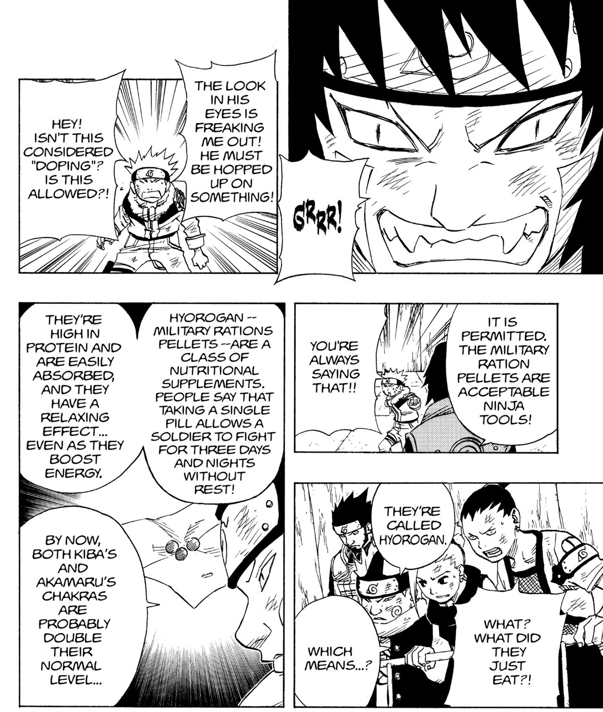 Und zwar: Hyourougan! Das war ursprünglich ein leicht zu transportierendes Nahrungsmittel, das die Ninja im alten Japan als Proviant benutzt haben, aber das Hyourougan, das bei NARUTO vorkommt, hat besondere Kräfte und dient vor allem dazu, Chakra wiederherzustellen oder zu verstärken. Außerdem erhöht es die mentalen Fähigkeiten und erlaubt es, ohne Schlaf oder Pause zu kämpfen.