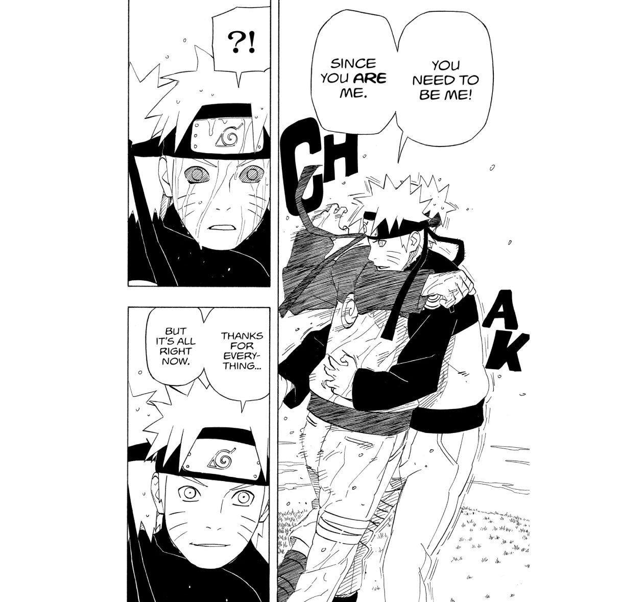 Inoue: Was "NARUTO" jedoch so bewegend macht, ist die Szene, in der das "eigene Böse" umarmt wird. Dies ist ein Punkt, der sich von den Beispielen aus der amerikanischen Literatur, die ich gerade erwähnt habe, unterscheidet. Im Westen gibt es manchmal einen Dualismus zwischen Gut und Böse, und die Schlussfolgerung ist in der Regel, dass das Böse besiegt werden muss. Naruto hingegen umarmt das Böse, anstatt es zu vernichten. Ich halte das für eine wunderbare Weltsicht in "NARUTO".