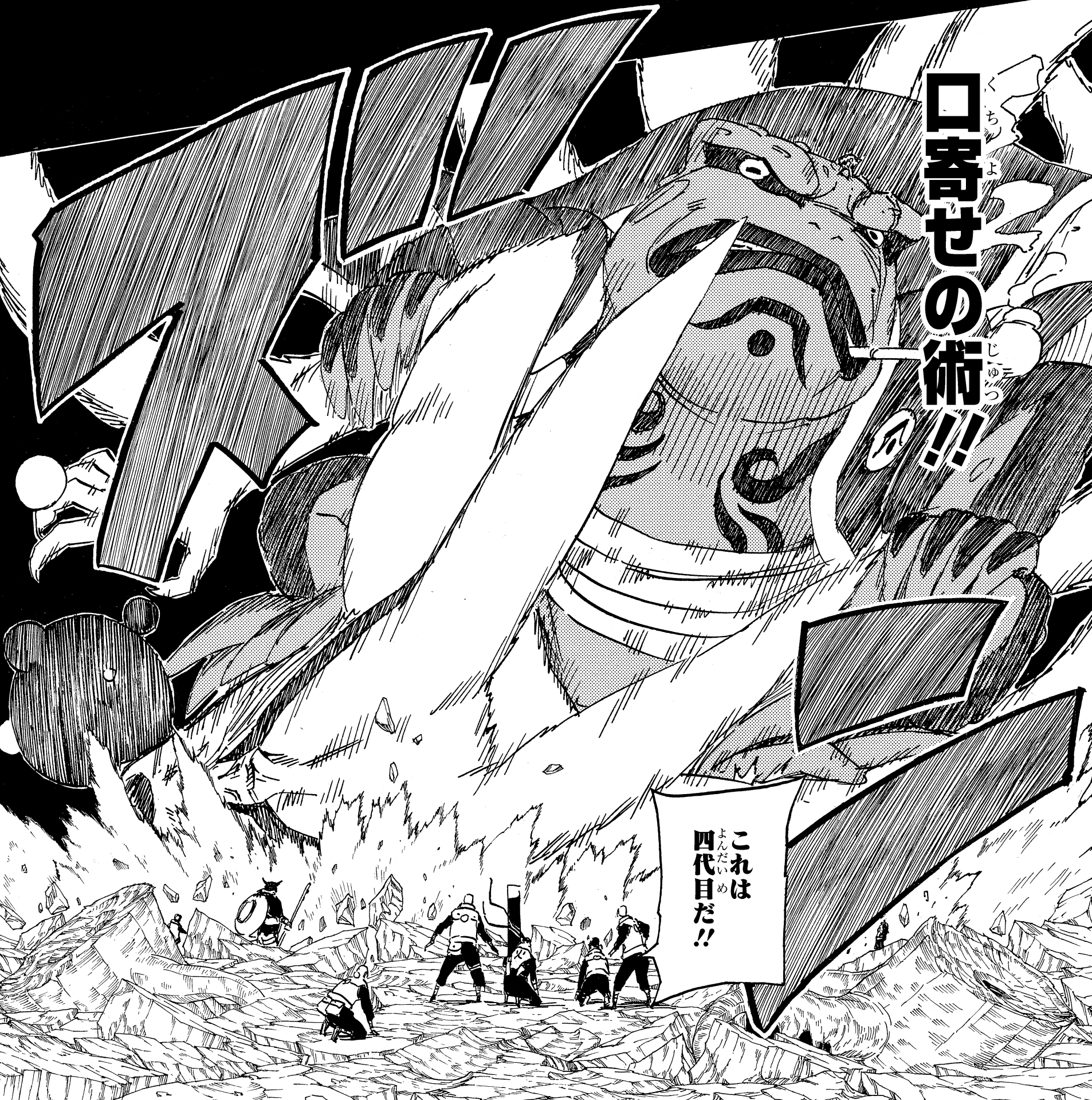 Mit seinem Jutsu des fliegenden Blitzes trieb Minato das Kyuubi noch weiter von Konoha weg.