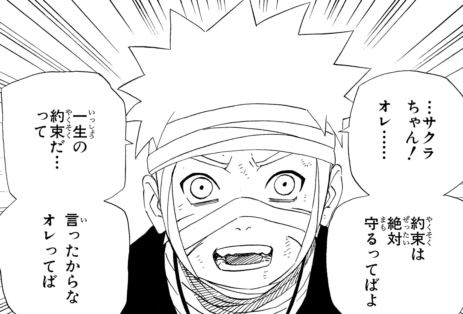 Um das Versprechen an Sakura zu halten und seiner Philosophie "stets seinen Worten treu sein" gerecht zu werden, verspricht er, Sasuke zurückzuholen!