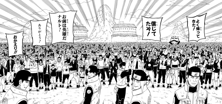 Als Naruto ins Dorf Konoha zurückkehrt, wird er von den Dorfbewohnern als Held gefeiert und mit tosendem Jubel empfangen!