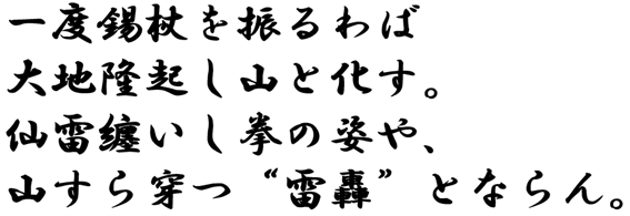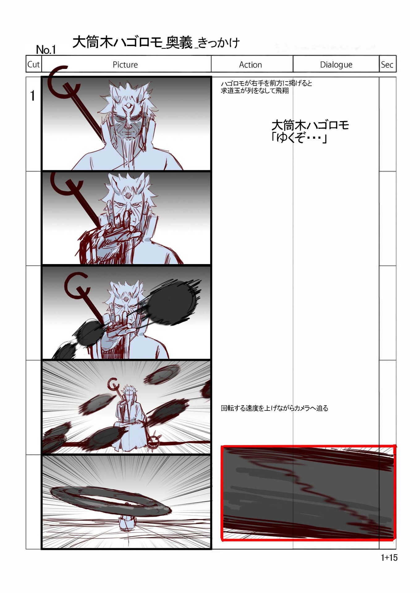 Es drückt nicht nur aus, welche Art von Secret Technique es sein sollte, sondern fasst auch die Atmosphäre zusammen, die es schaffen soll. Die darauf basierende Aktion war „ein einzelner Schlag mit einer Handvoll Blitzen“.