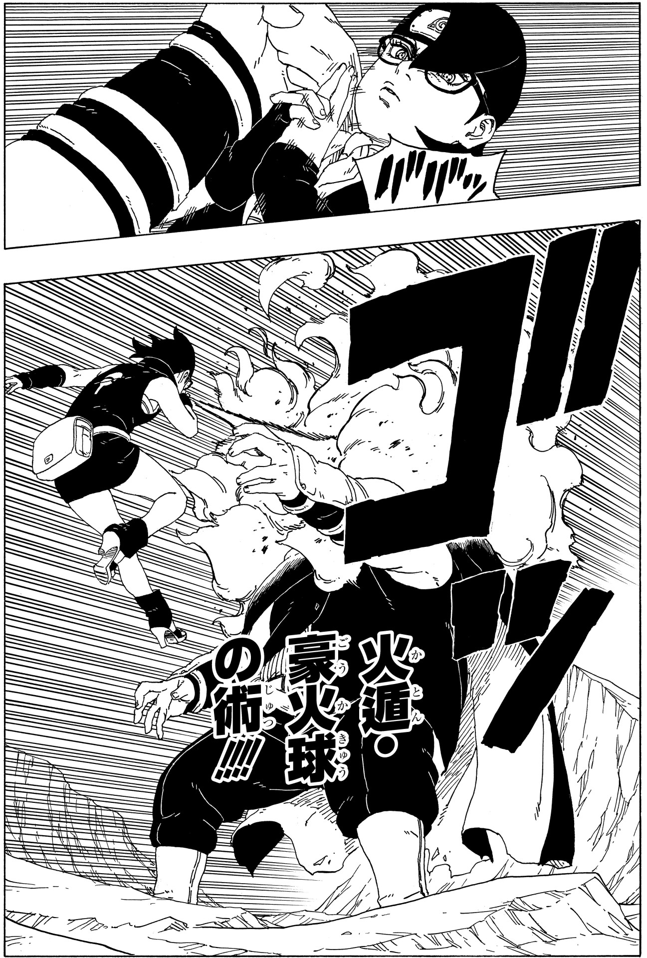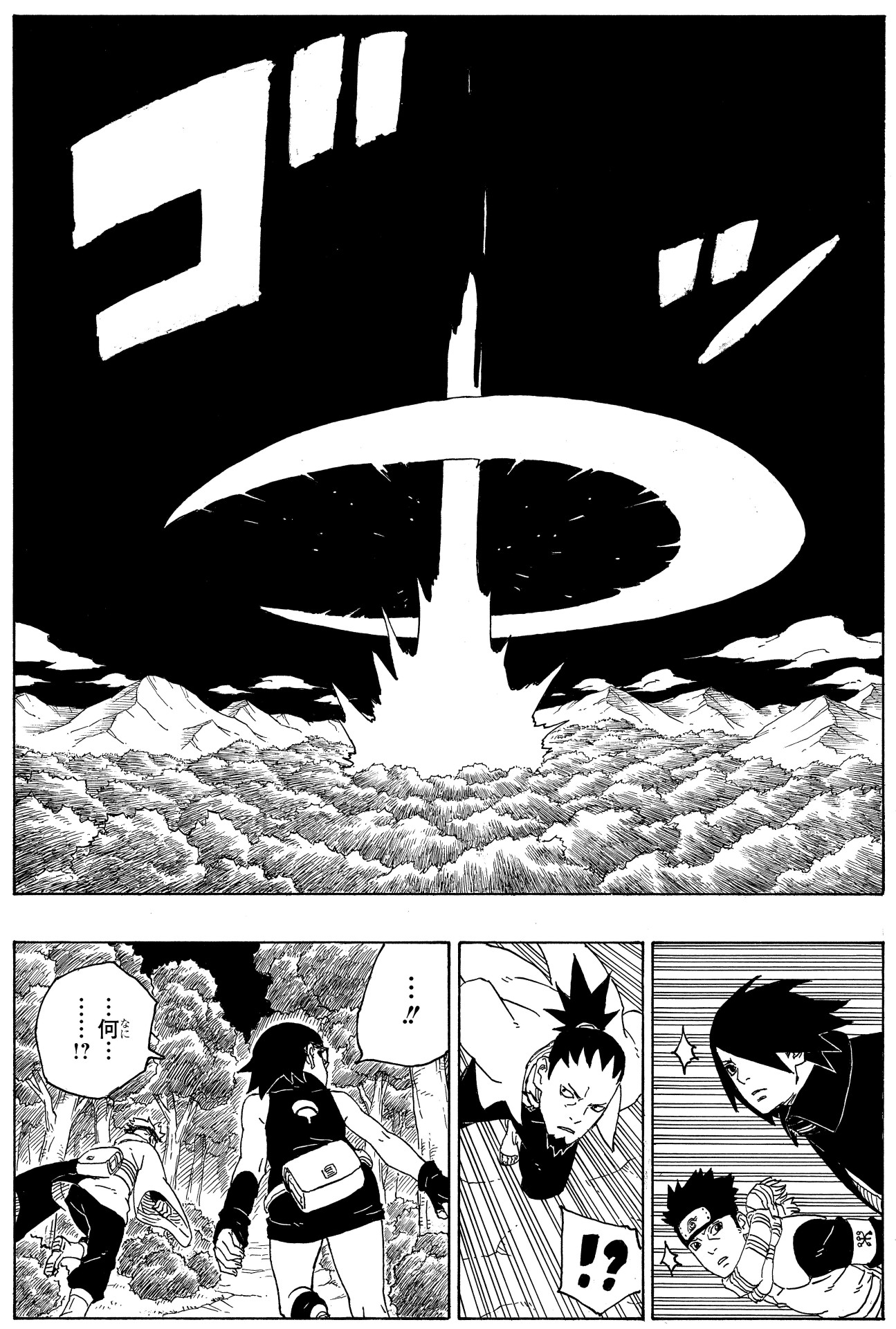 Boruto und Kawaki werden von dem gerissenen Boro provoziert, und Mitsuki, der versucht, sie zu retten, verliert seine Kraft an der "mysteriösen düsteren Wolke", die von Boro kontrolliert wird.