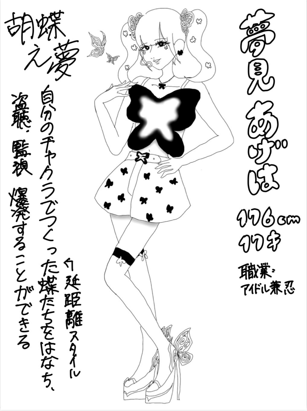Ihr Hauptberuf ist der eines Idols, aber sie arbeitet auch als Ninja. Ihre Shinobi-Fähigkeiten sind im Vergleich zu anderen weit überlegen. Sie kann ihre Ninja-Aufgaben aus der Ferne ausführen, sodass sie während ihrer Auftritte als Idol oft Missionen übernimmt.