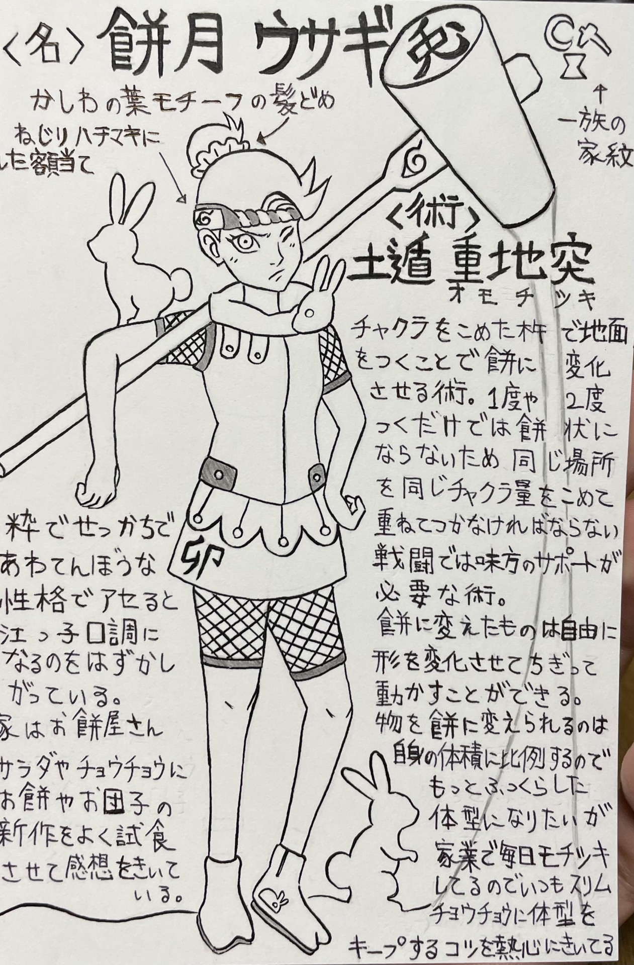 Ein genialer Jonin aus der Hidden Cloud. Er besitzt ein 3D-Druckwerkzeug, mit dem er verschiedene Dinge für Mobilität, Angriff und Verteidigung herstellt. Er friert Objekte in der Luft ein und verwendet sie, um an hohe Orte zu klettern, und baut Fallen, um die Bewegungen seiner Feinde zu behindern. Er ist ein großer Höhenfan und liebt es, im Mittelpunkt der Aufmerksamkeit zu stehen. Obwohl er oft Ärger macht, weil er sich von seinen Emotionen leiten lässt, ist er im Grunde seines Herzens wirklich sehr freundlich.