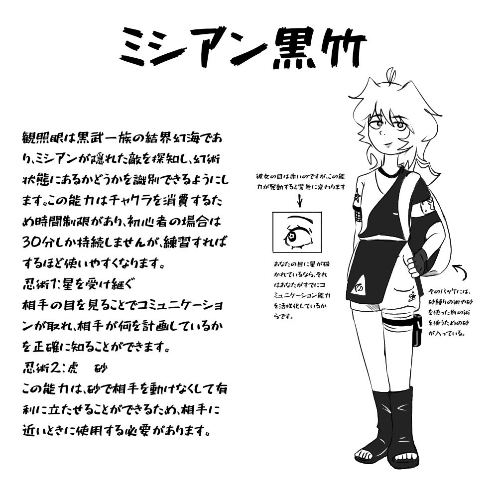 Eine 14-jährige Ninja-Strategin aus dem im Sand verborgenen Dorf. Ihr Clan ist ziemlich neu, also verbringt Mishian ihre Zeit damit, ihren Kekkei Genkai zu testen und zu erforschen. Sie liebt es, neue Orte zu erkunden und zu entdecken. Obwohl Mishian die Kazekage bewundert, hat sie kein Verlangen, diese Position selbst einzunehmen. Vielmehr träumt sie davon, jemand zu werden, der sie beschützt.