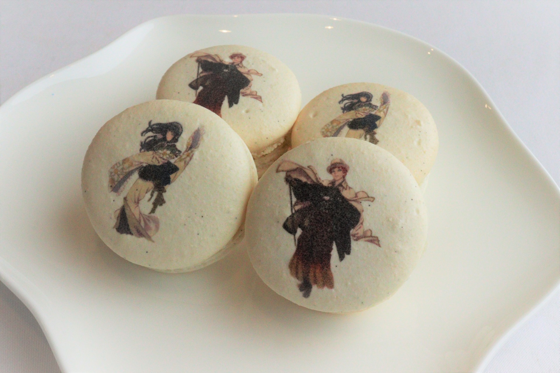 Cakes, macaroons, and lattes featuring the original character designs will be available!