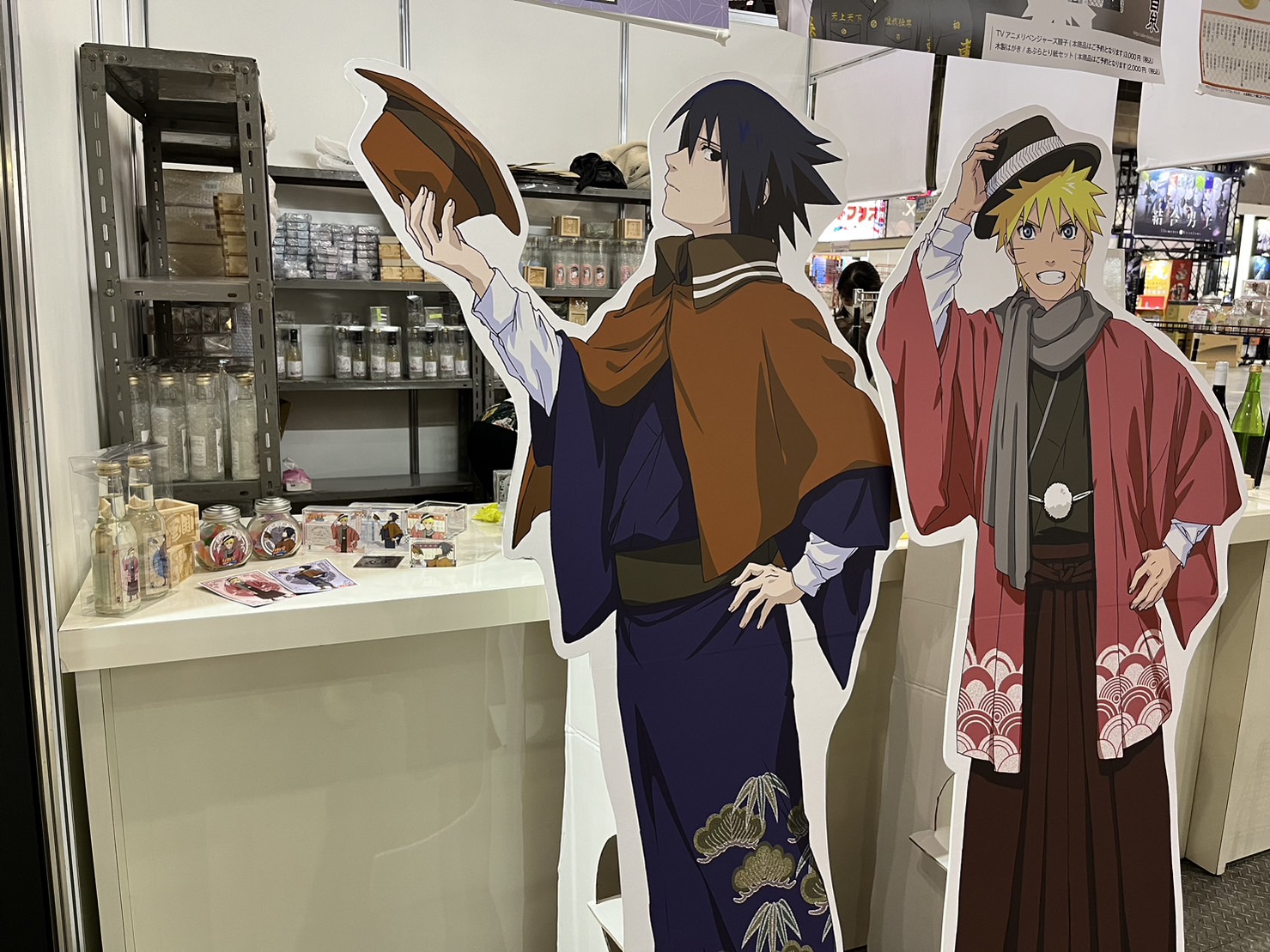 At the Shiraito Shuzo booth, visitors were greeted by life-size Naruto and Sasuke cutouts sporting original outfits!