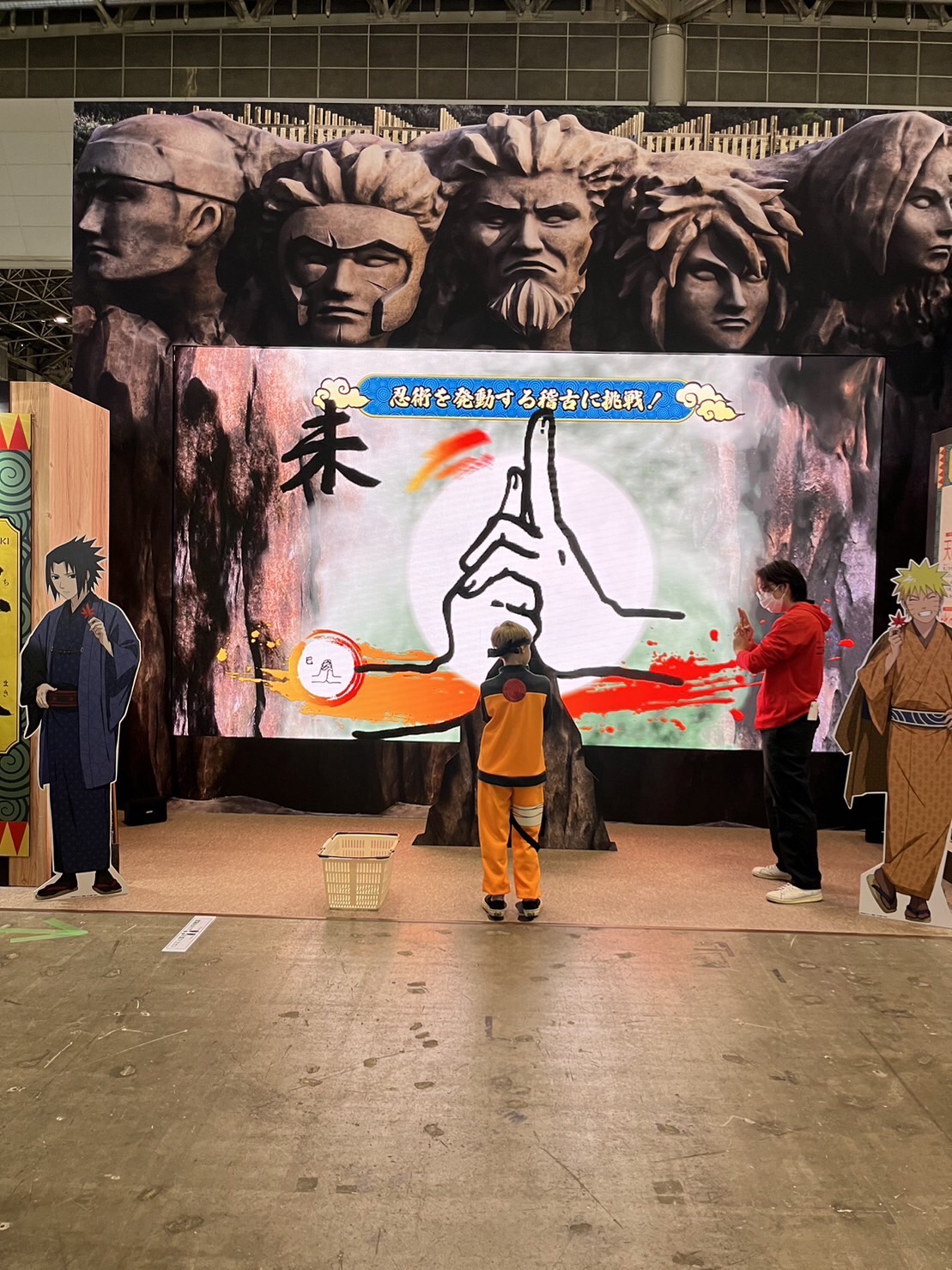 Challengers had to correctly form the hand signs shown on a screen to activate jutsu!!