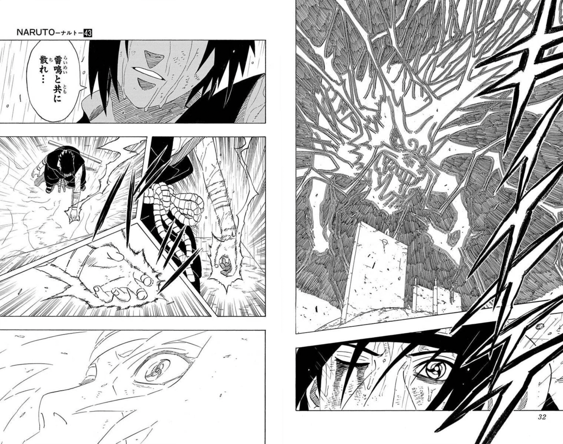 The second one is, well, Sasuke has a technique called "Kirin", and in my opinion the scene where he uses it is an excellent one because of how it fuses Kishimoto's artistry with technology.
