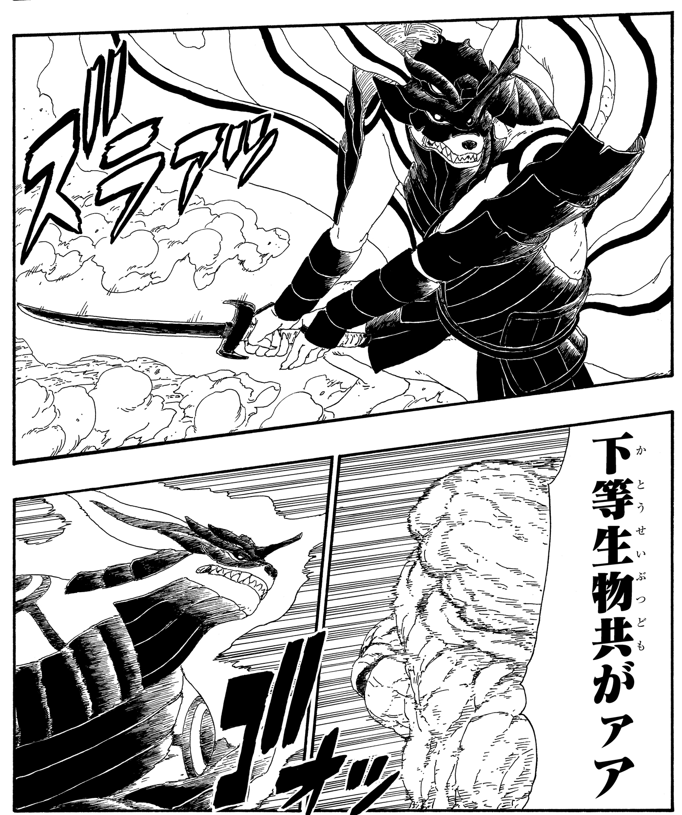 Determined to fulfill his goal, Momoshiki swallows up his comrade Kinshiki to attain new power!