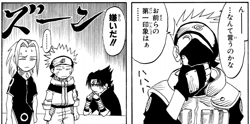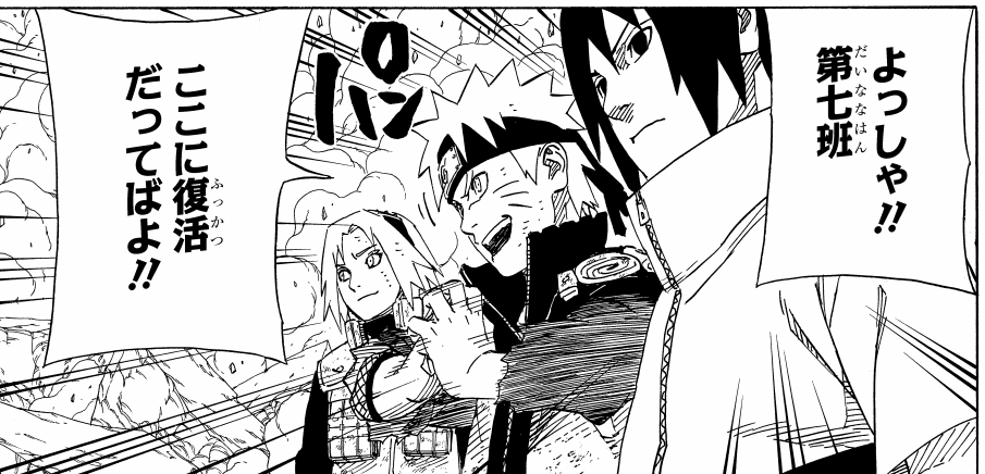 Yui: I thought that their relationship was broken beyond repair, so Team 7 teaming up once more during the Great Ninja War was a real surprise. Even though they were all split up, there must have been something still unchanged in their hearts that allowed them to work together again despite everything. The way Kakashi slowly changes how he talks about them, from "Based on my first impression, I'd have to say...I hate you!!" to "I really...love you guys", made a big impression on me, perhaps because of how long it took for him to grow fond of them.