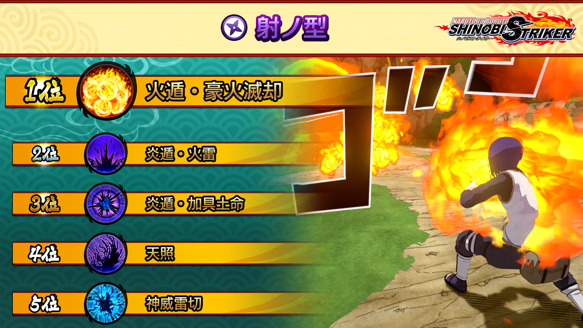The simple but strong "Fire Style: Majestic Destroyer Flame" claimed first place! There sure are lots of first-class offensive Ninjutsu in the ranged type rankings.