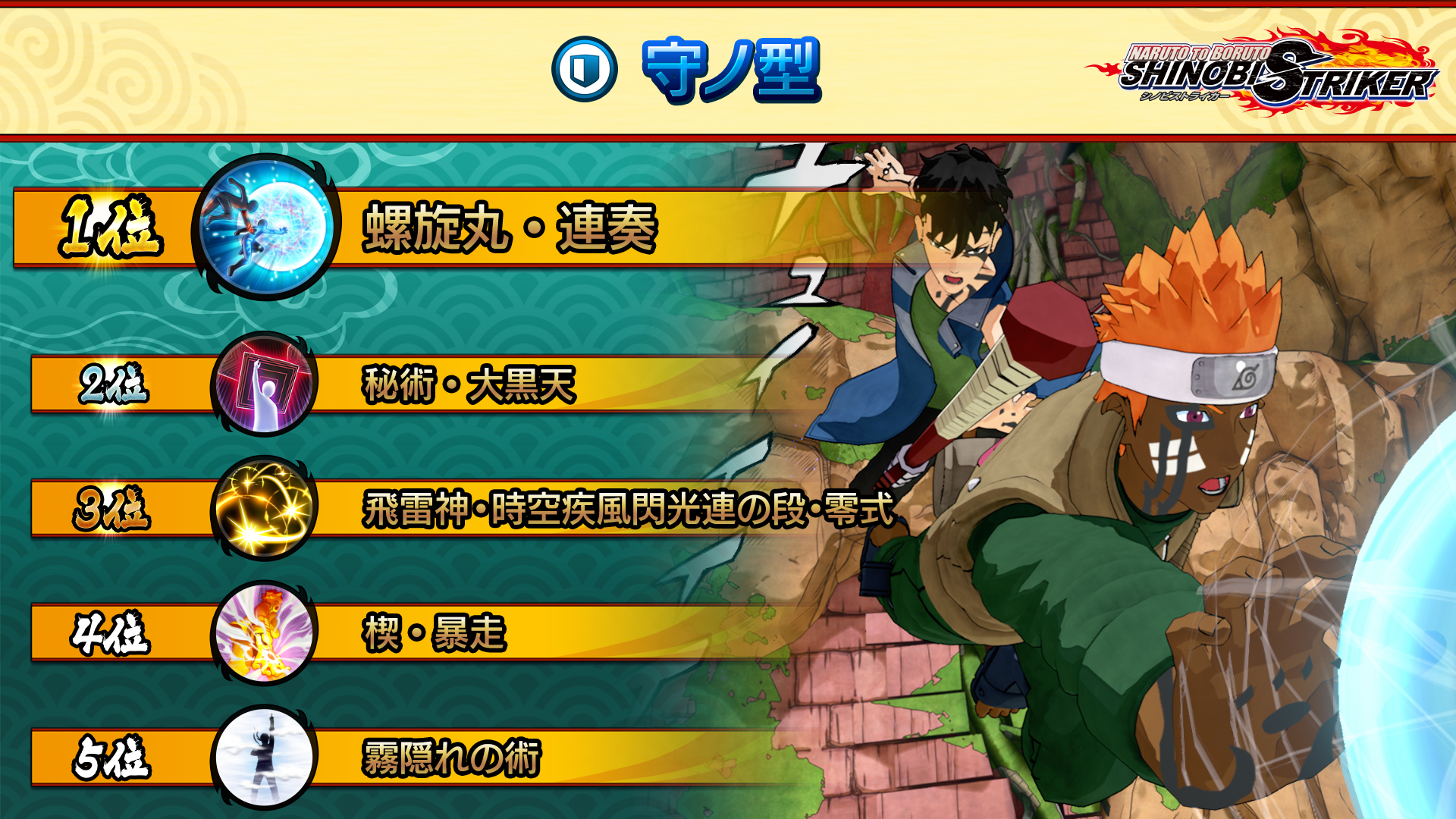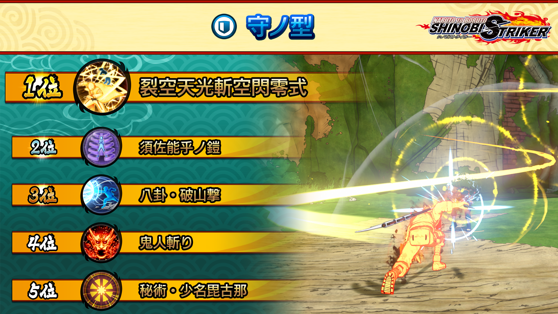 The powerful defensive Ninjutsu "Susano'o Armor" took second in that ranking, with "Rasengan: Unison" coming in first, its ease of use and low Secret Technique gauge requirement likely contributing to its popularity.