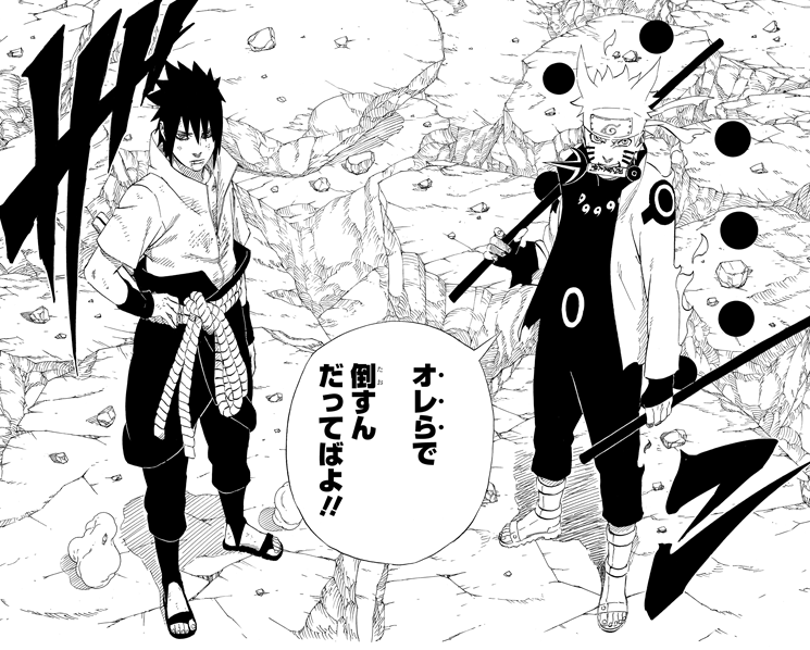 Naruto joins Sasuke, who simultaneously experienced a similar encounter with the Sage of Six Paths, and the two combine their strength to go toe-to-toe with Madara, who has now become the Ten Tails' Jinchuriki!