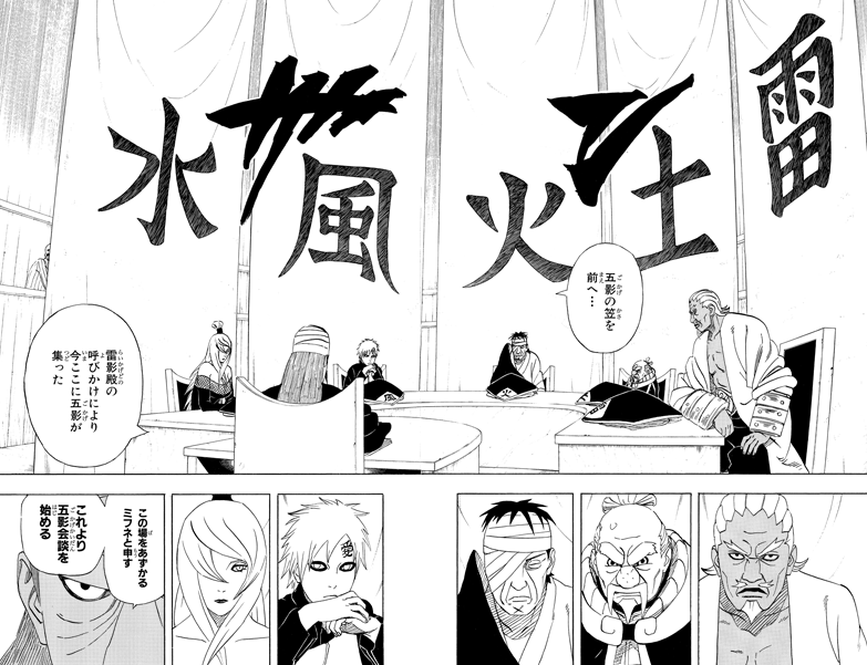 While Konoha is still attempting to rebuild from the devastation wrought by Pain, shocking news arrives: Sasuke has kidnapped the Eight Tails' Jinchuriki from the Hidden Cloud, who are calling for a Gokage Summit to be held.