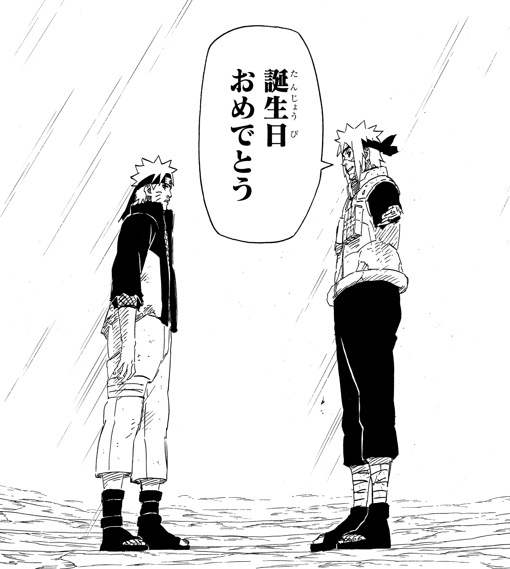 Minato is waiting to greet his son, and finally gets to wish him happy birthday for the first time before the two must part as the Reanimation Jutsu cast on him is released.