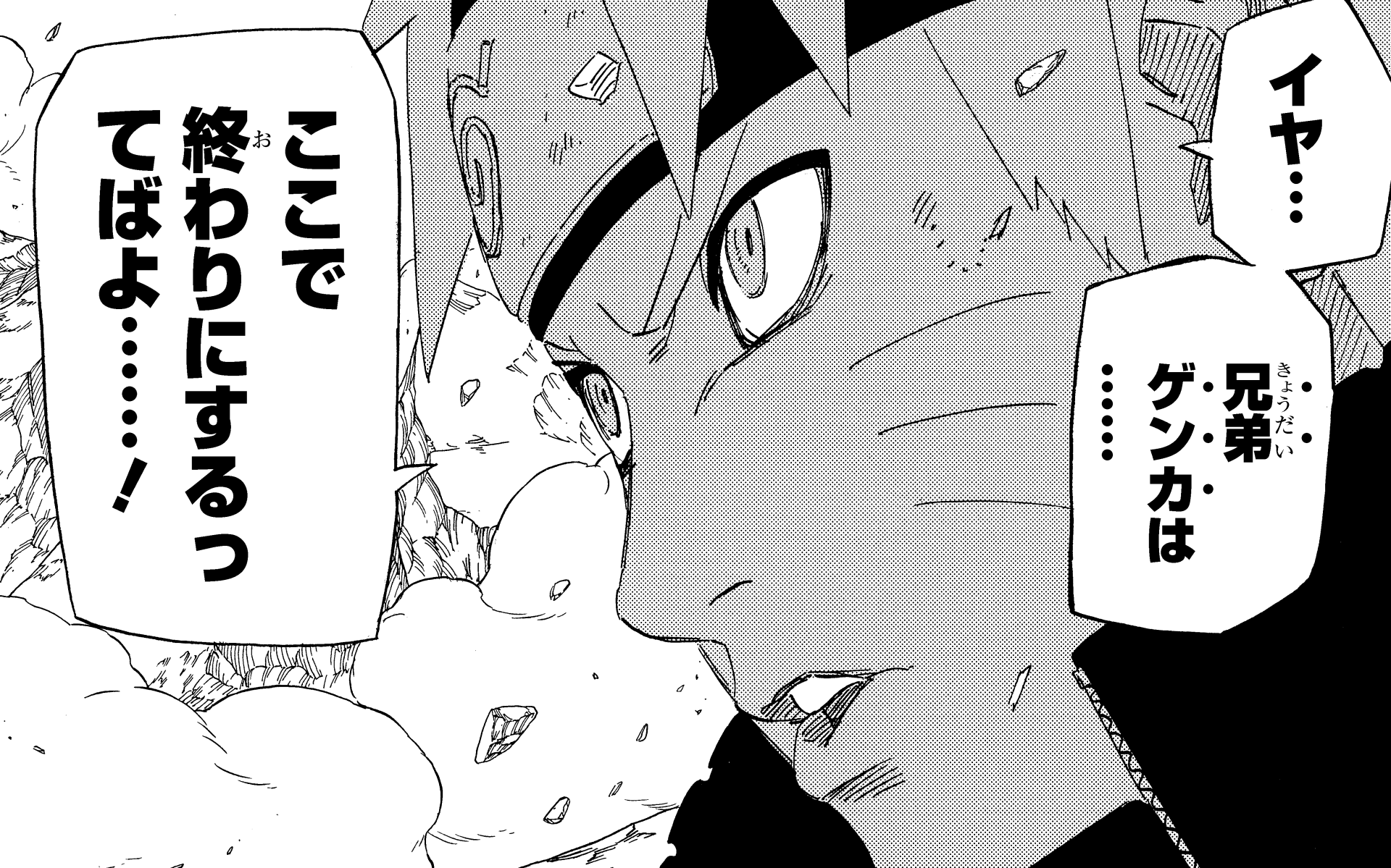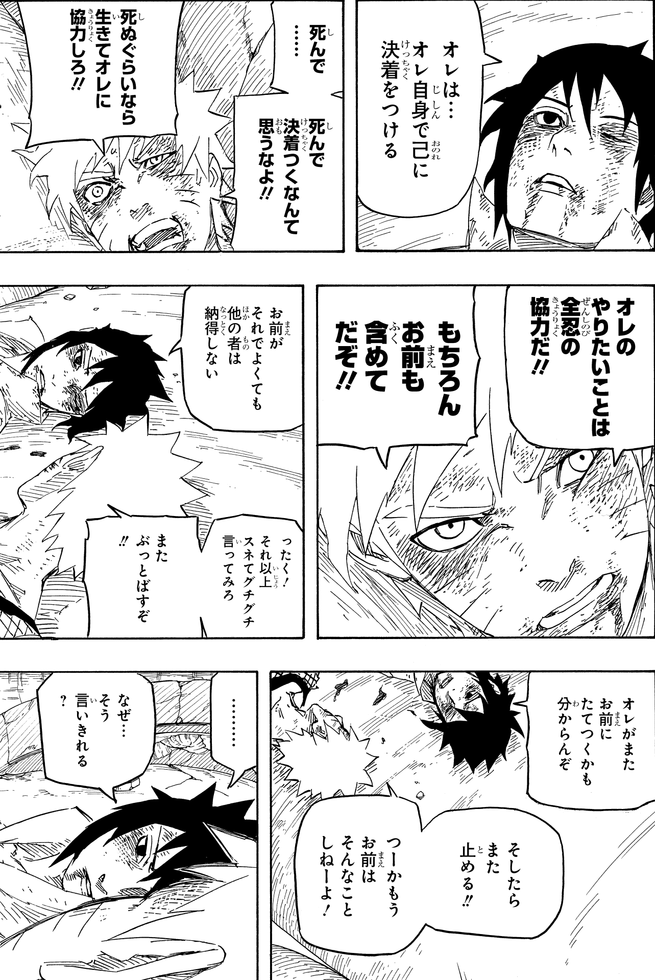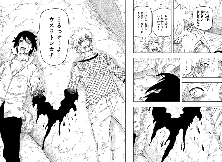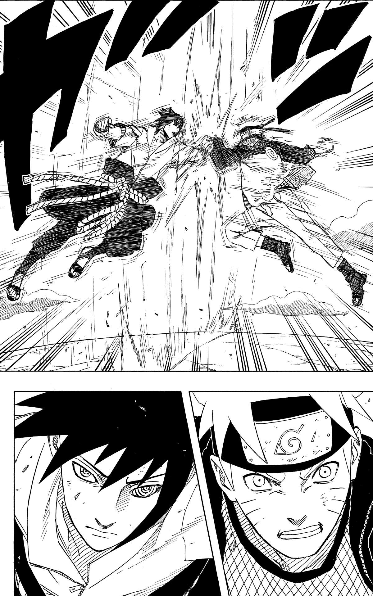 During the battle, Naruto and Sasuke realize that if they go all-out against each other, it will mean both their deaths.
