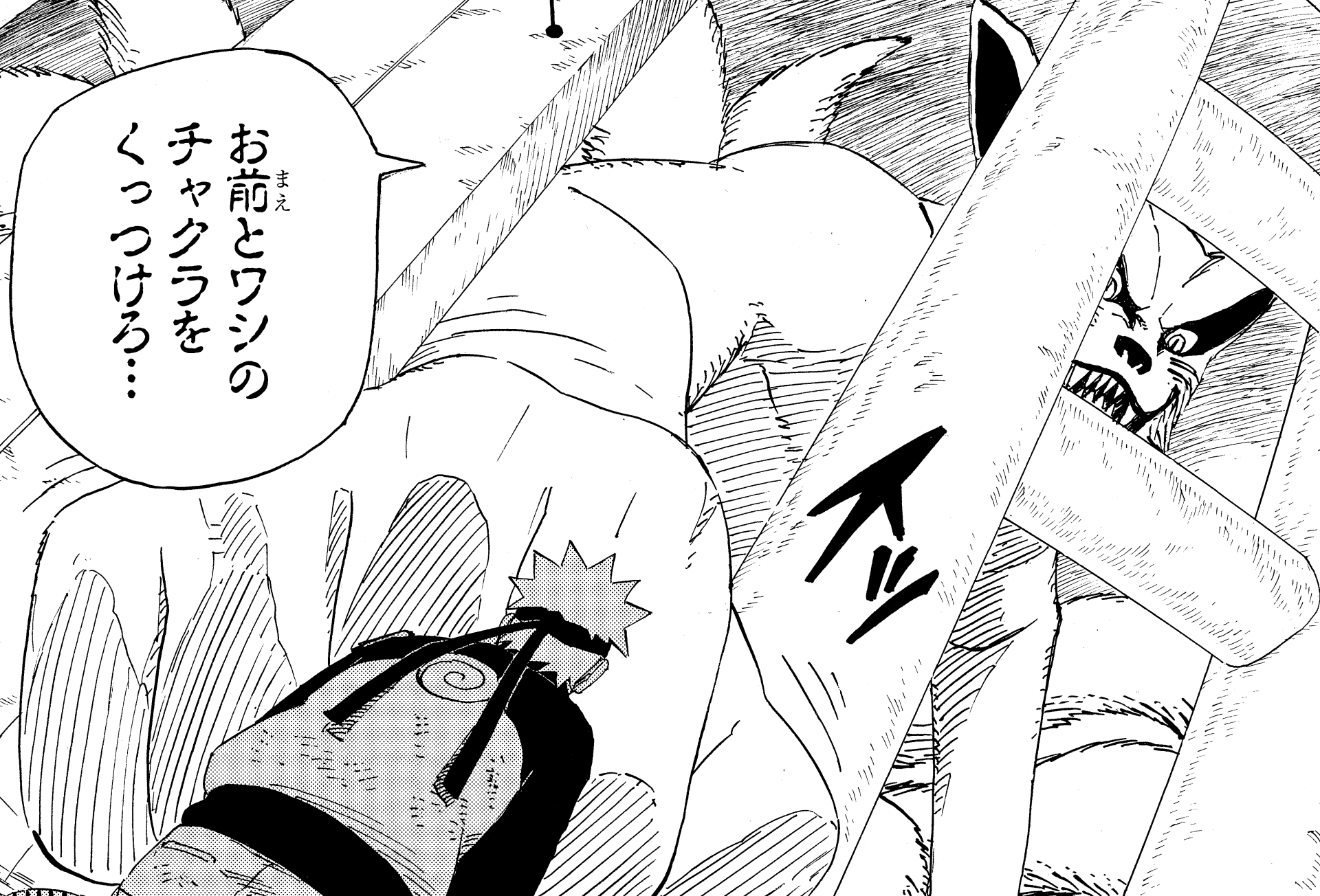 Having witnessed all Naruto's words and actions since the day the boy was born, and having seen him live out his shinobi way, Kurama agrees to help, and finally hears Naruto call him by name as the two become partners!
