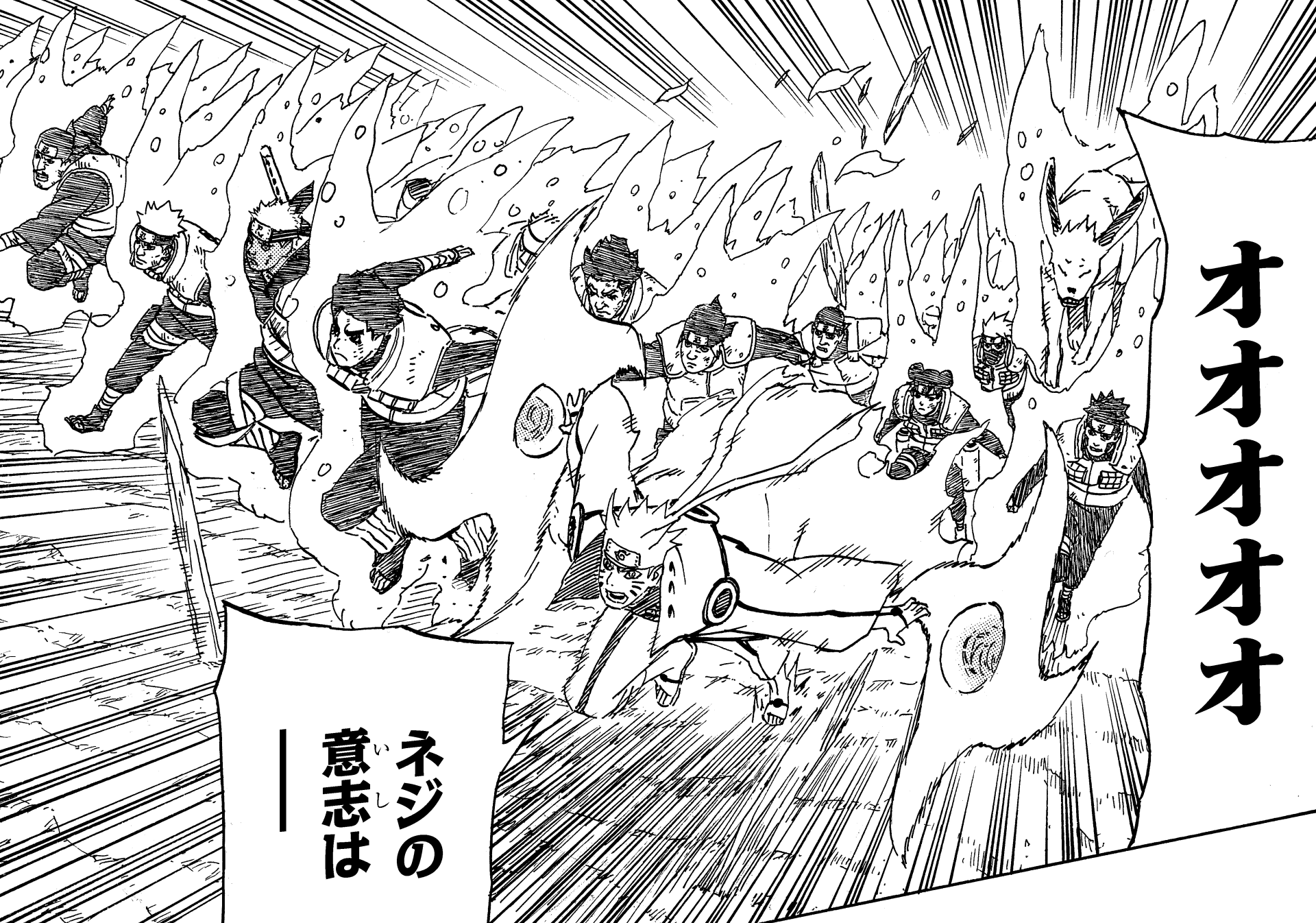 Naruto continues to lead the shinobi against the Ten Tails, even in the face of grave losses that include Shikaku Nara and Inoichi Yamanaka—who had been directing the forces from HQ—and his friend Neji Hyuga...