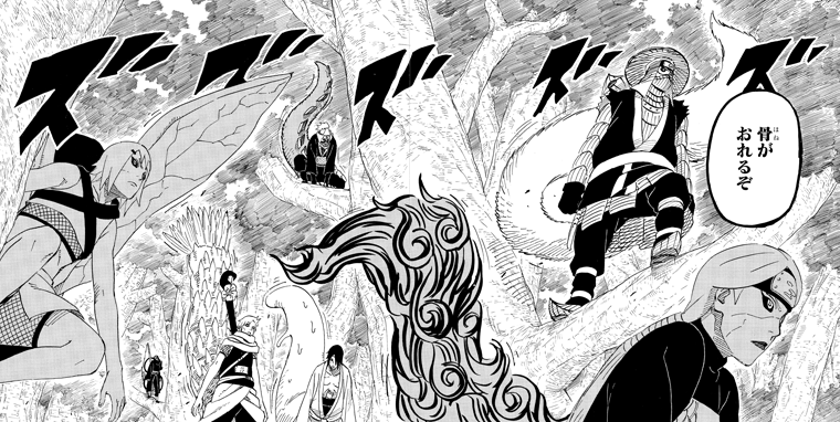 Arriving at the front lines, he throws himself into the ongoing battles against reanimated past Kage such as Second Tsuchikage Mu and the Third Raikage!