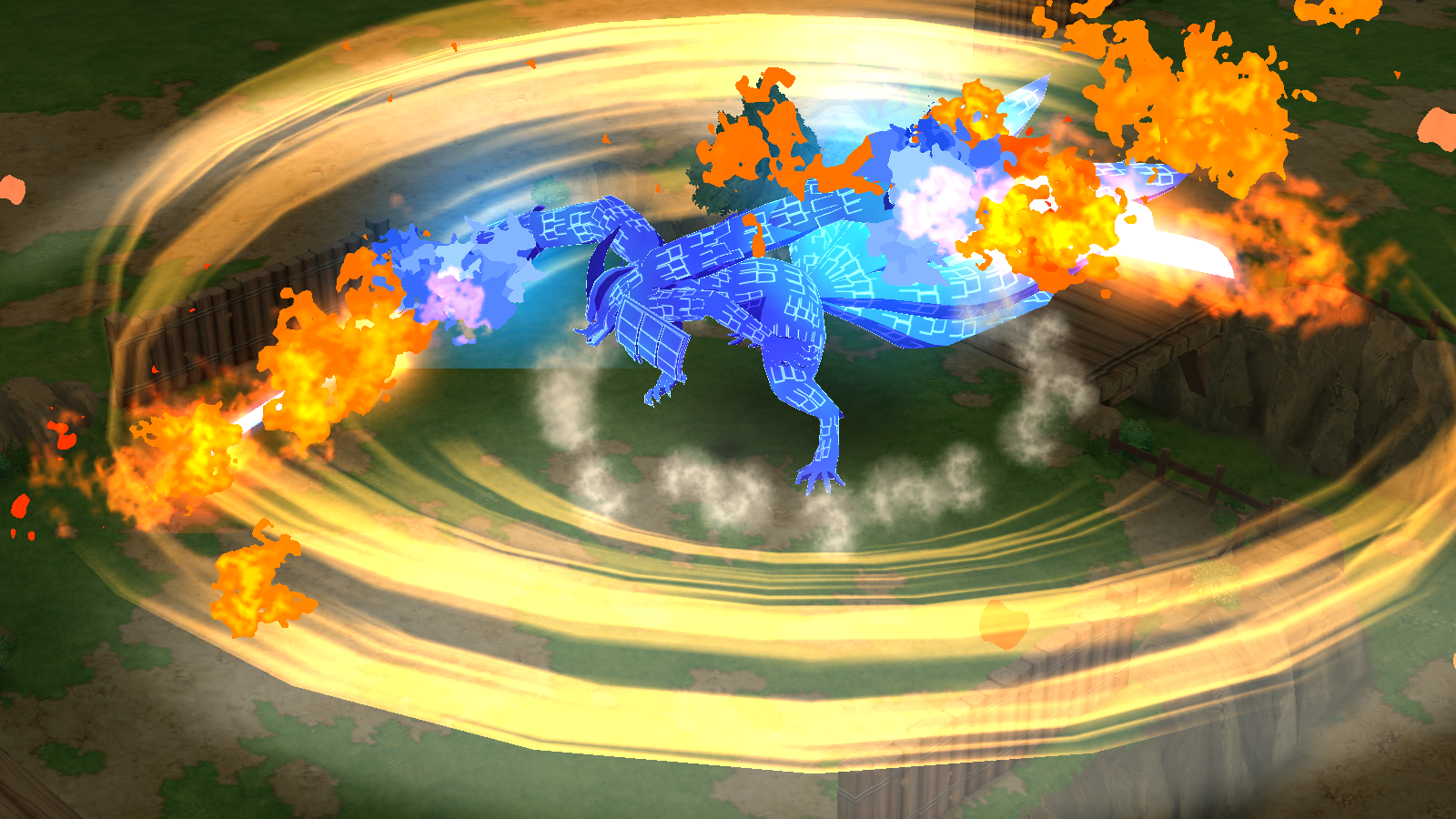 Sends slashing flames multiple times ahead while progressing forward, causing damage!