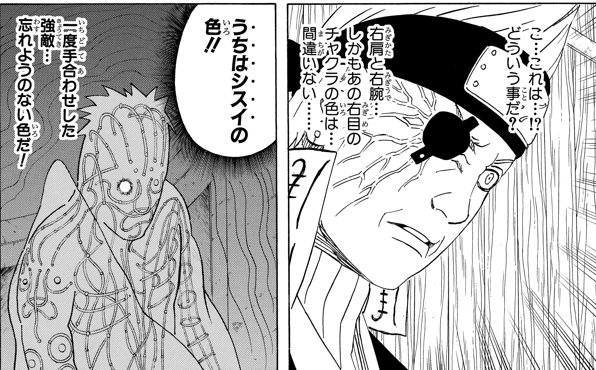 His power is such that the Kirigakure ninja Ao still clearly recognizes Shisui's chakra—even over ten years after their wartime encounter—and says to himself, "He was a formidable foe that I fought against once... I'll never forget his color!"