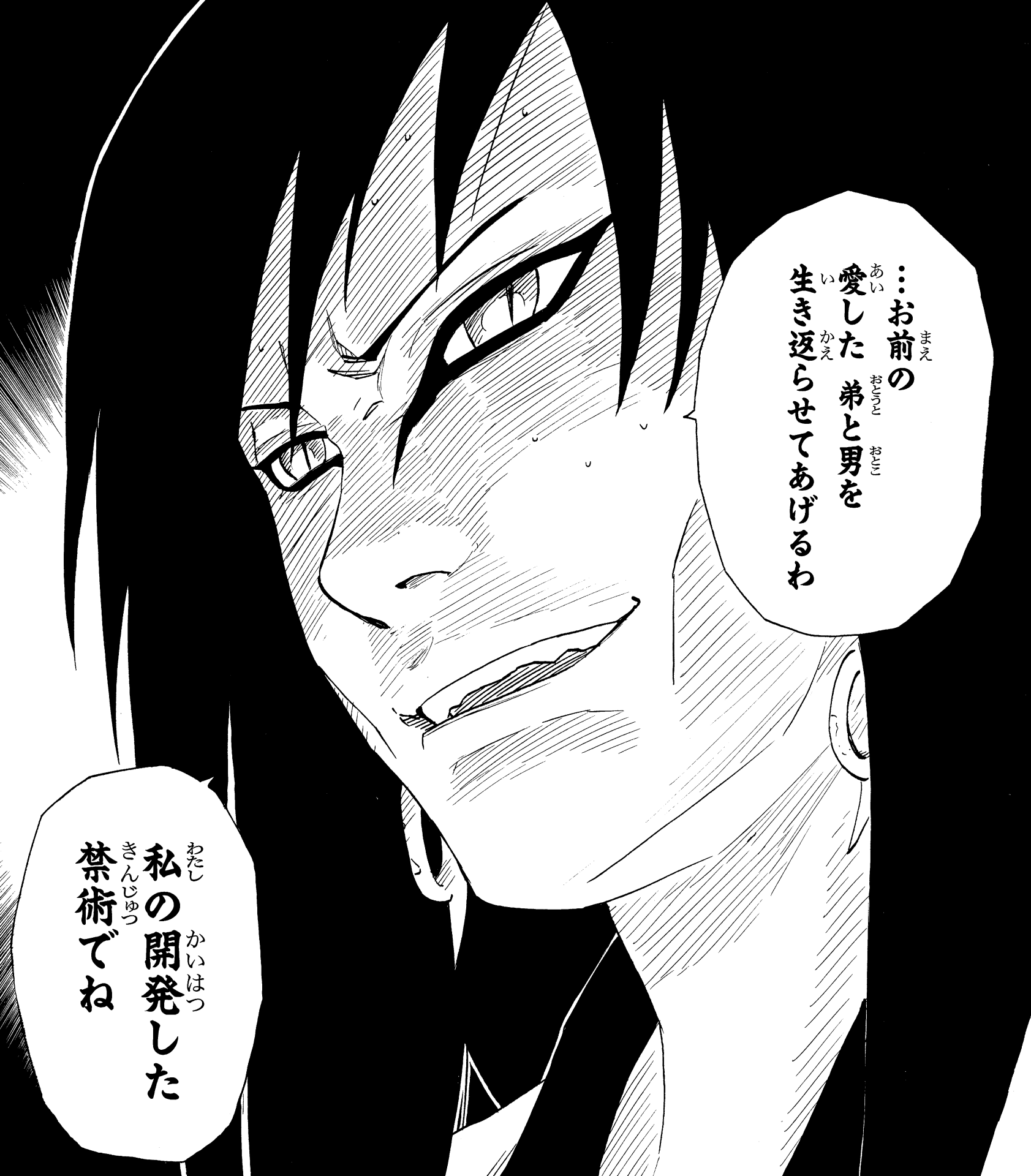 First he revives during the duel between Sasuke and Itachi, taking advantage of his former student's depleted chakra to escape from inside him.