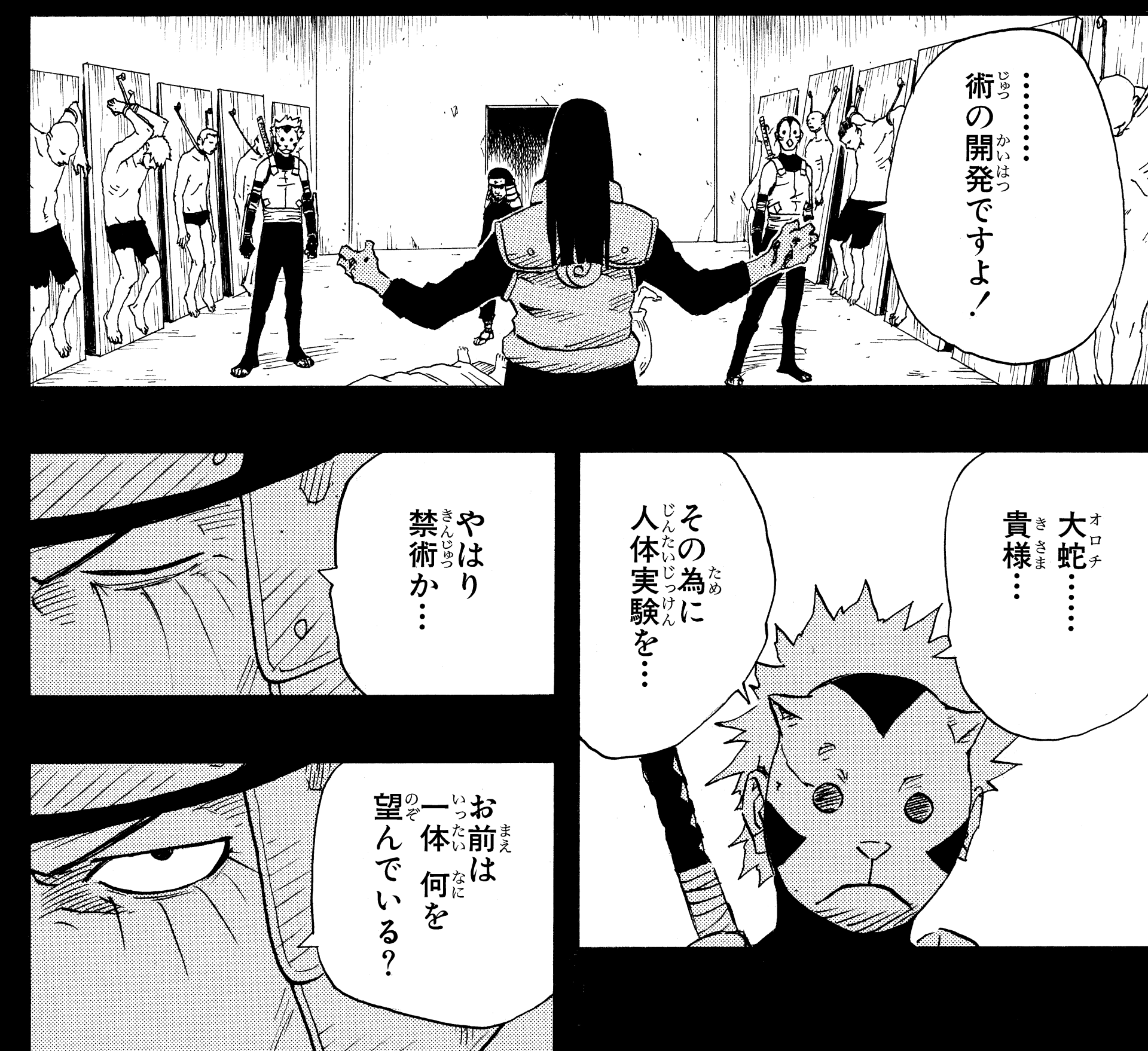 Perhaps spurred on by this rejection, Orochimaru begins conducting inhumane experiments to further his research.