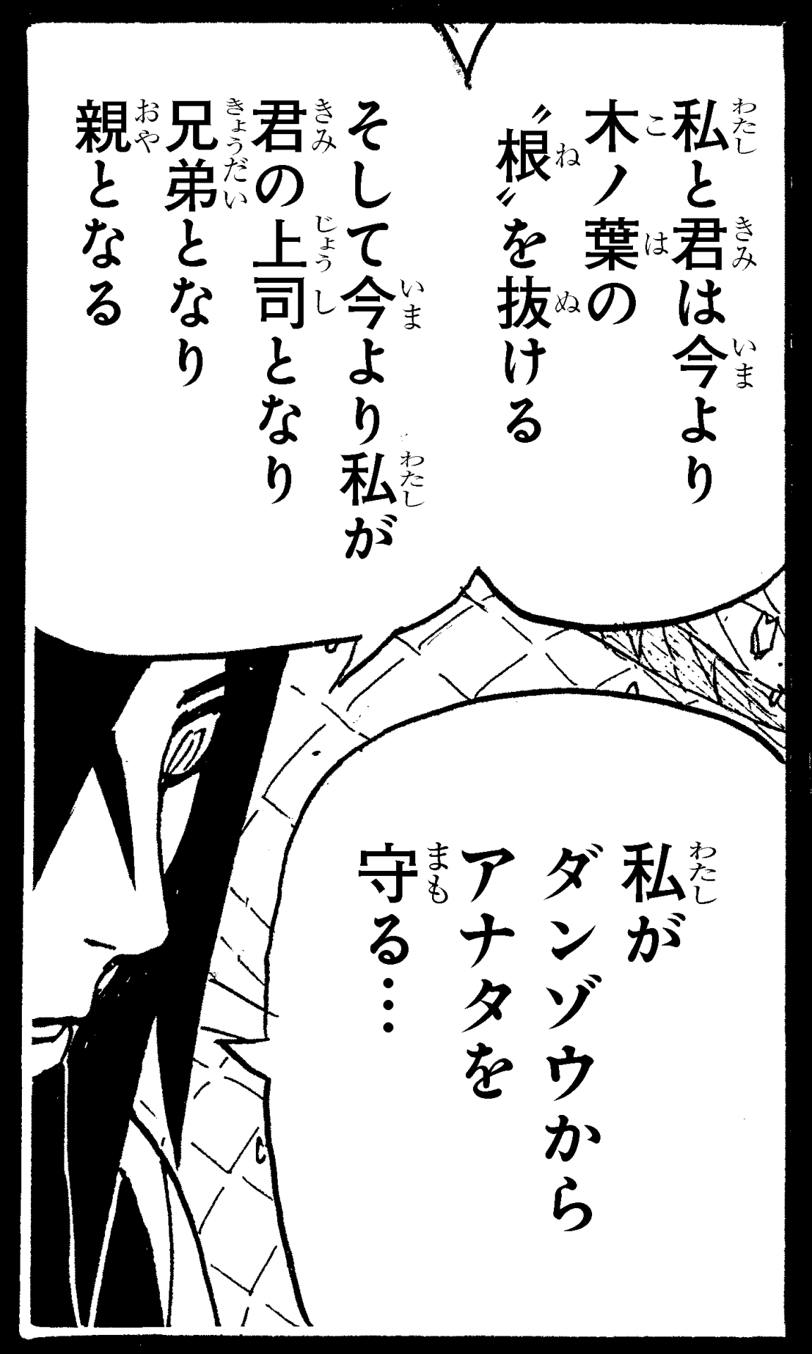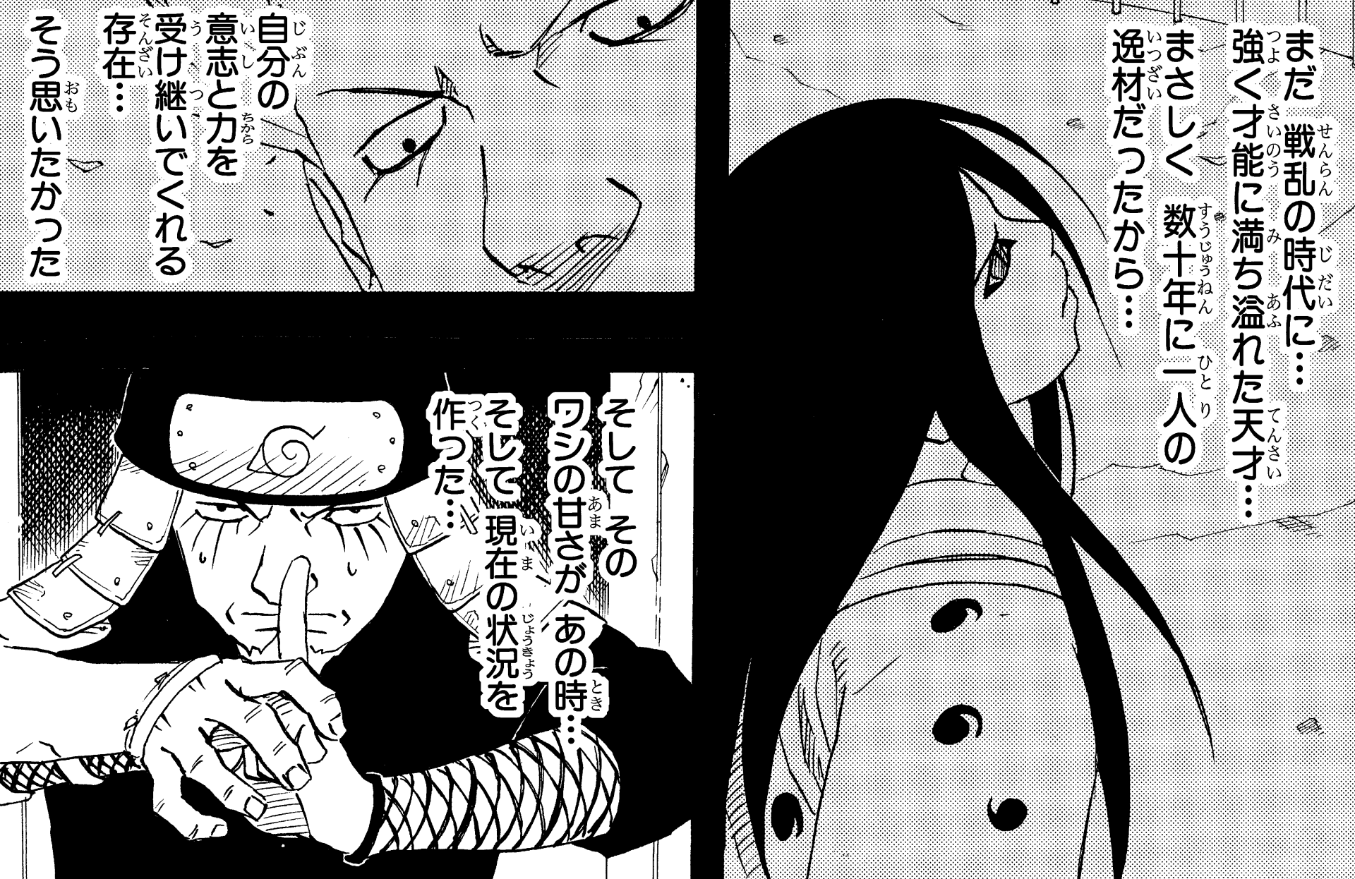The boy shows such promise that Hiruzen hopes for Orochimaru to inherit his will and strength.