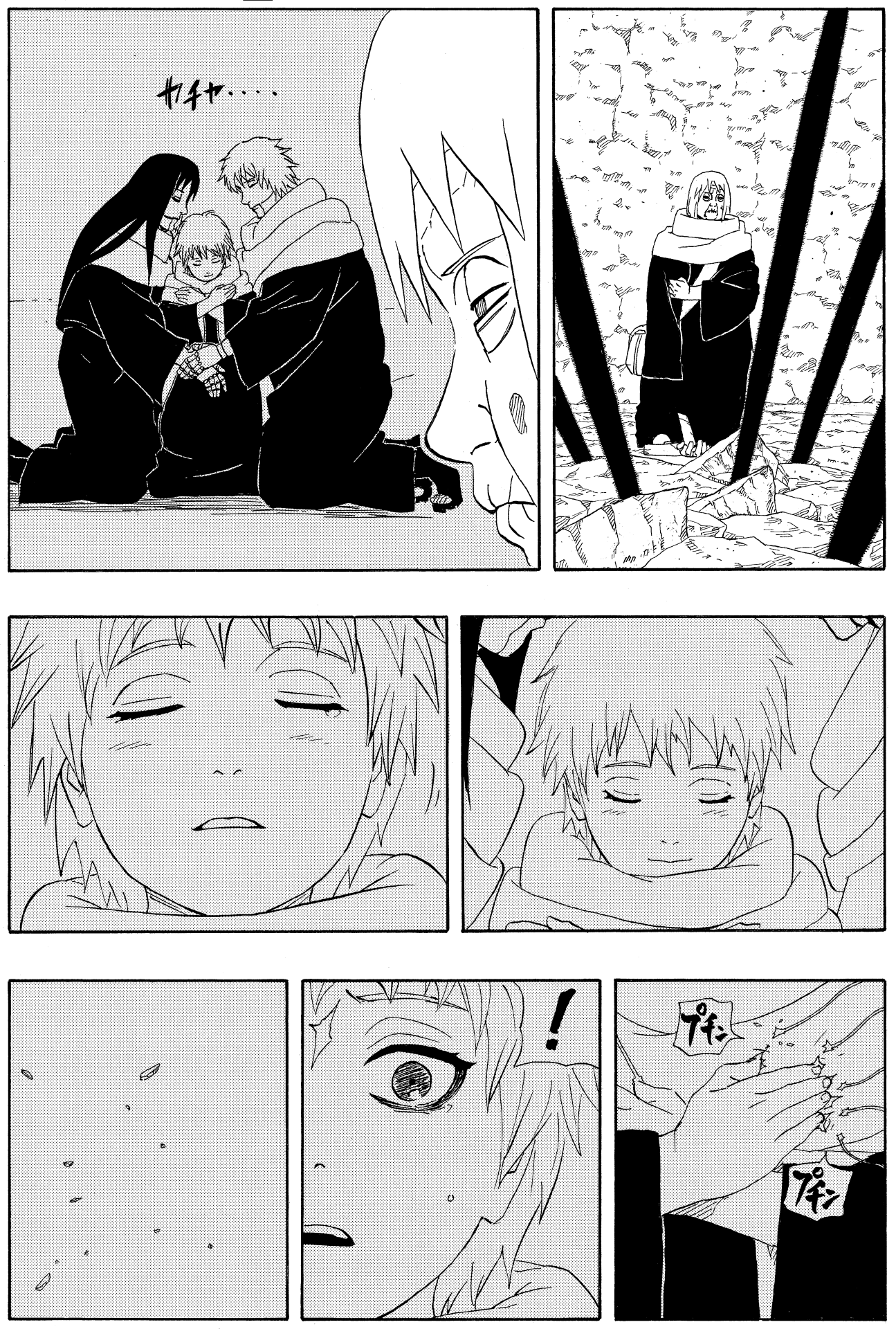 Though Sasori anticipates Granny Chiyo's attack, he is unable to dodge in time. The moment of hesitation that costs him his life seems to prove that despite his best efforts, something human yet remains within him.