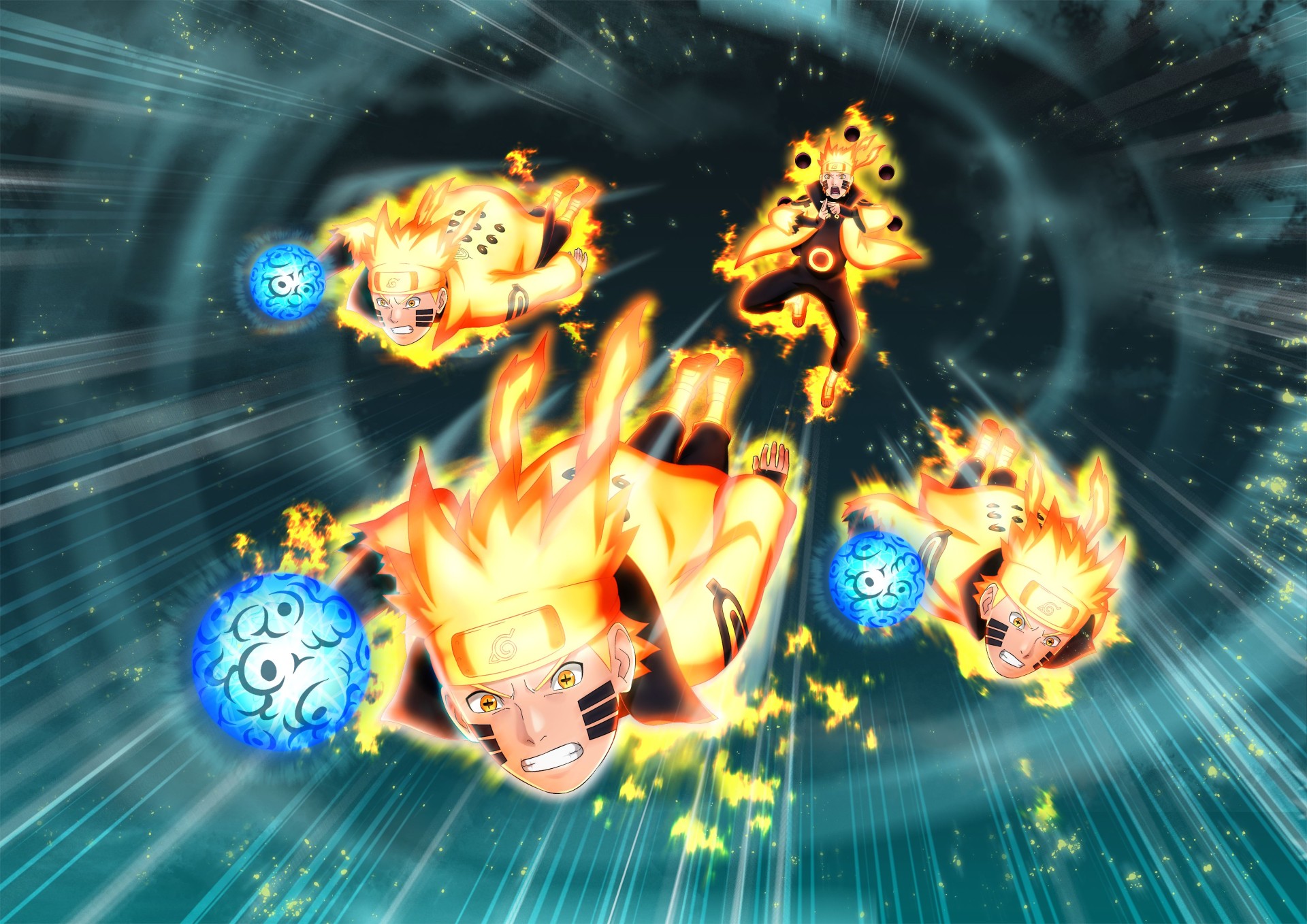 Dashes forward and slashes at surroundings with a chakra blade before shadow clones throw Rasen Shurikens imbued with Tailed Beast Chakra at surrounding enemies, causing highly-accurate damage!