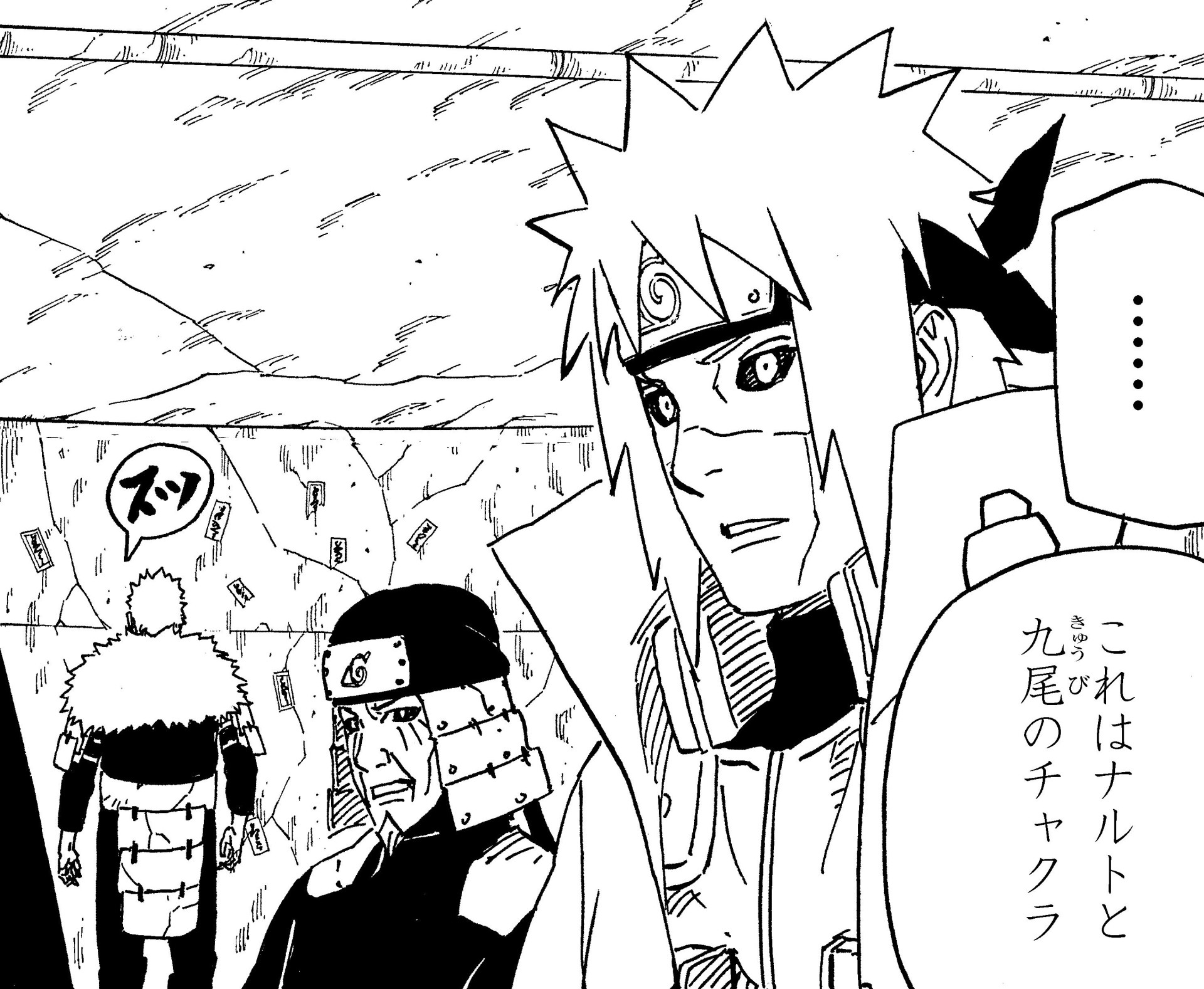 Orochimaru informs them that the shinobi world is currently in a state of war, and Minato casts his attention toward the battlefield, sensing the chakra of his son Naruto fighting alongside the Nine Tails, Kurama.