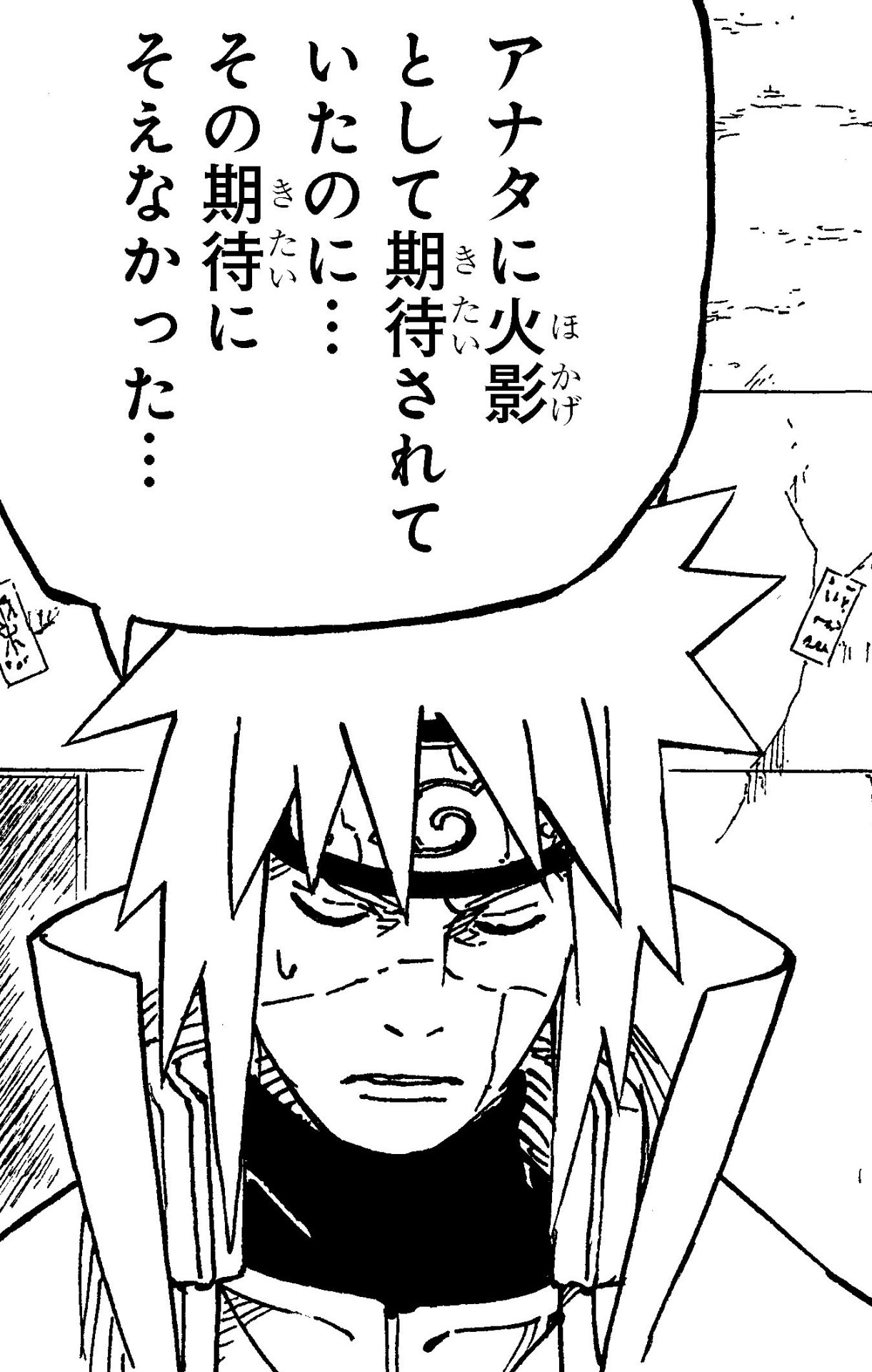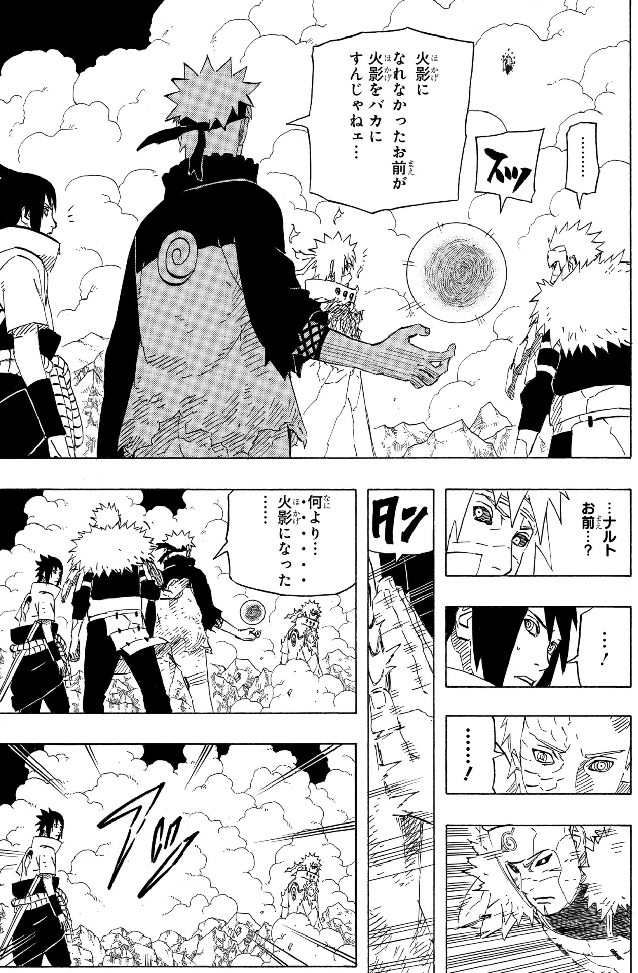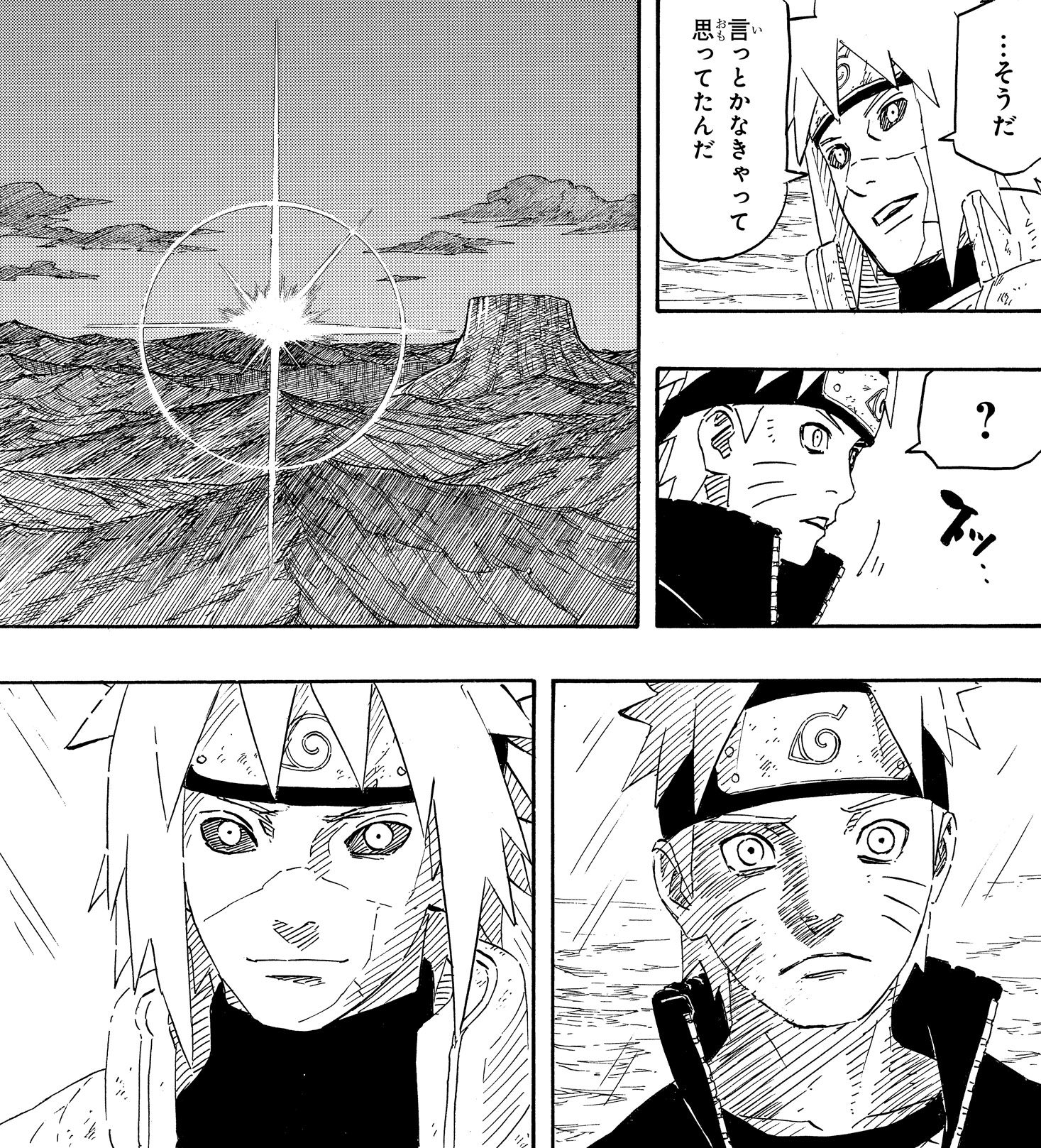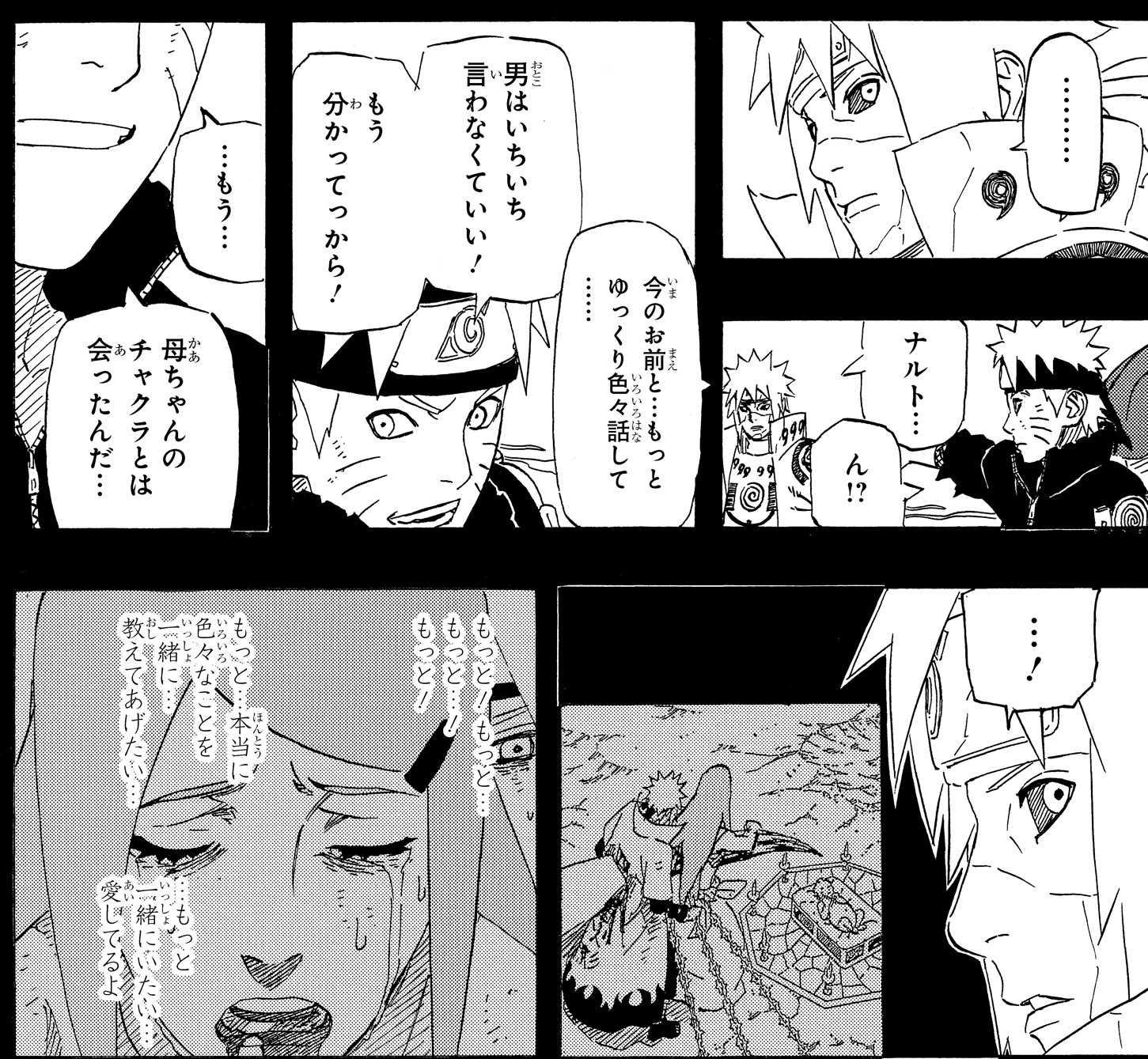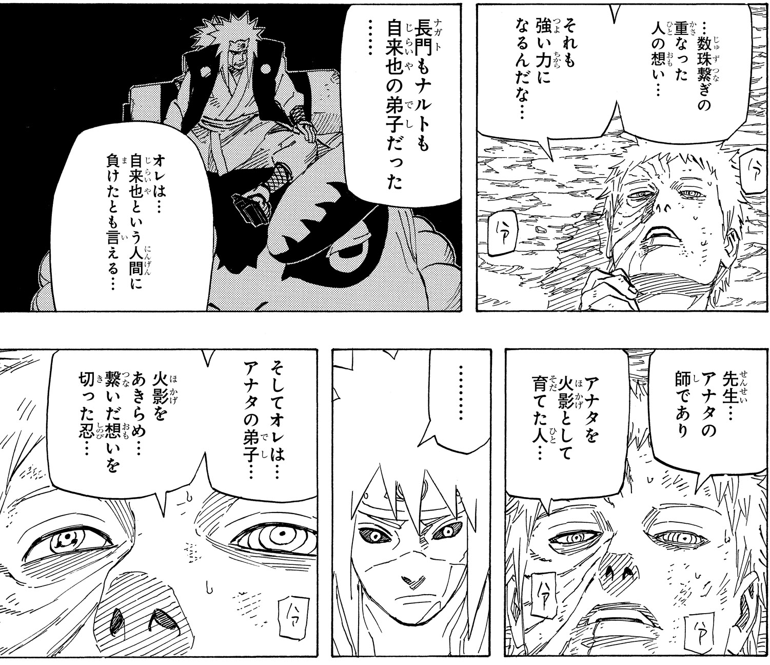 Minato questions his former student in the midst of the battle, and is struck with guilt over his failure to stop Obito all those years ago.