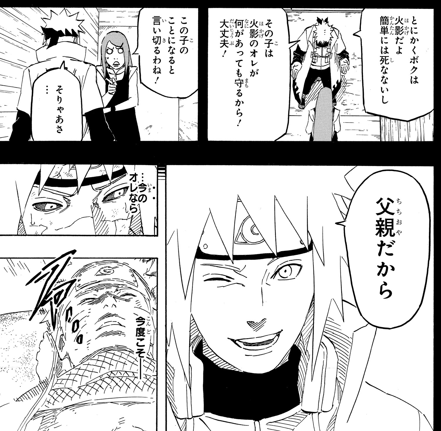 The regret of being unable to fulfill his duties as Hokage, and the joy of being reunited with his son at last. Full of conflicting thoughts, Minato heads to the site of the conflict along with the other Hokage!
