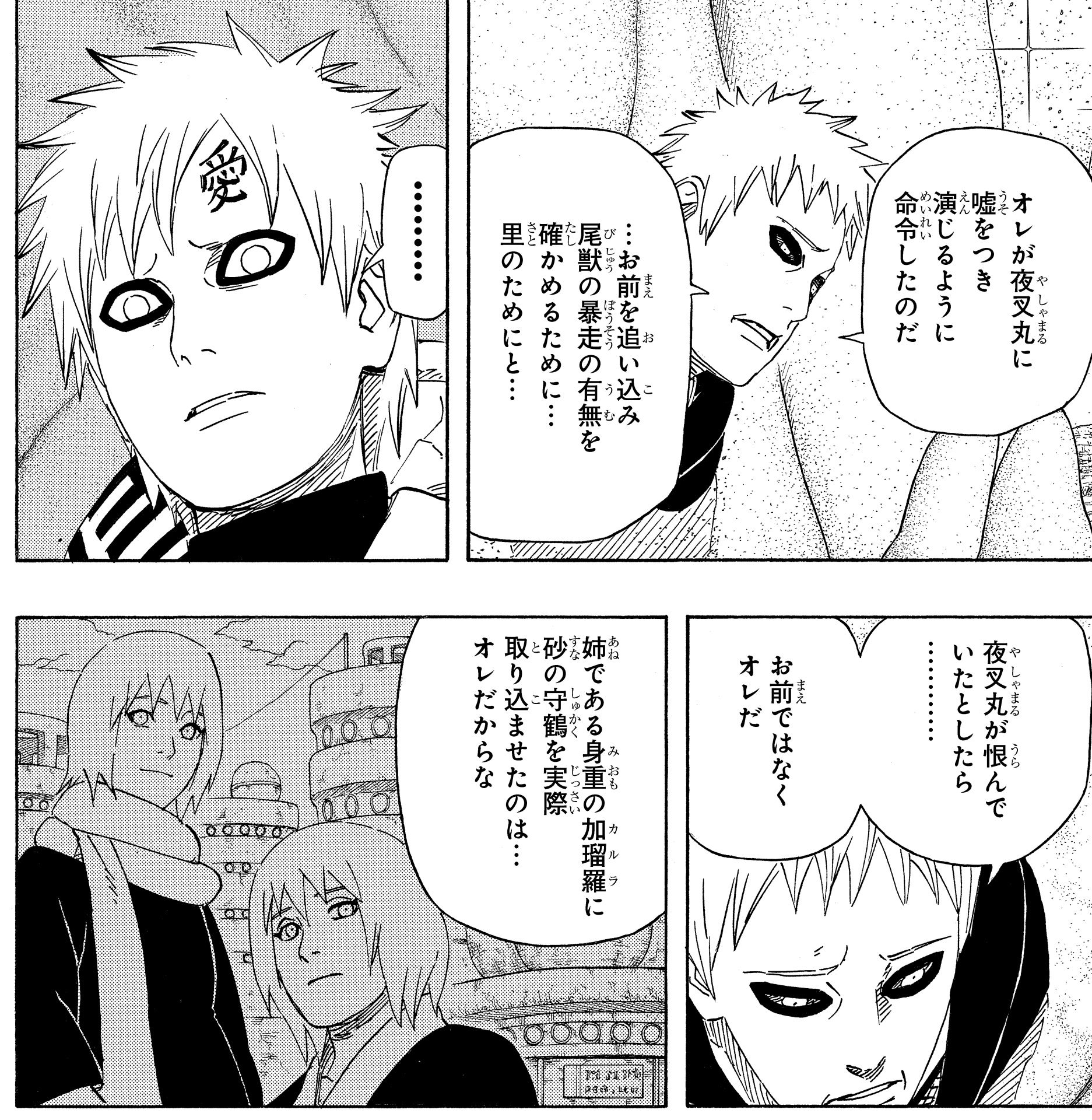 Devastated and confused, Gaara begs Yashamaru to tell him why, only to learn that the assassination order came from his own father, the Kazekage.