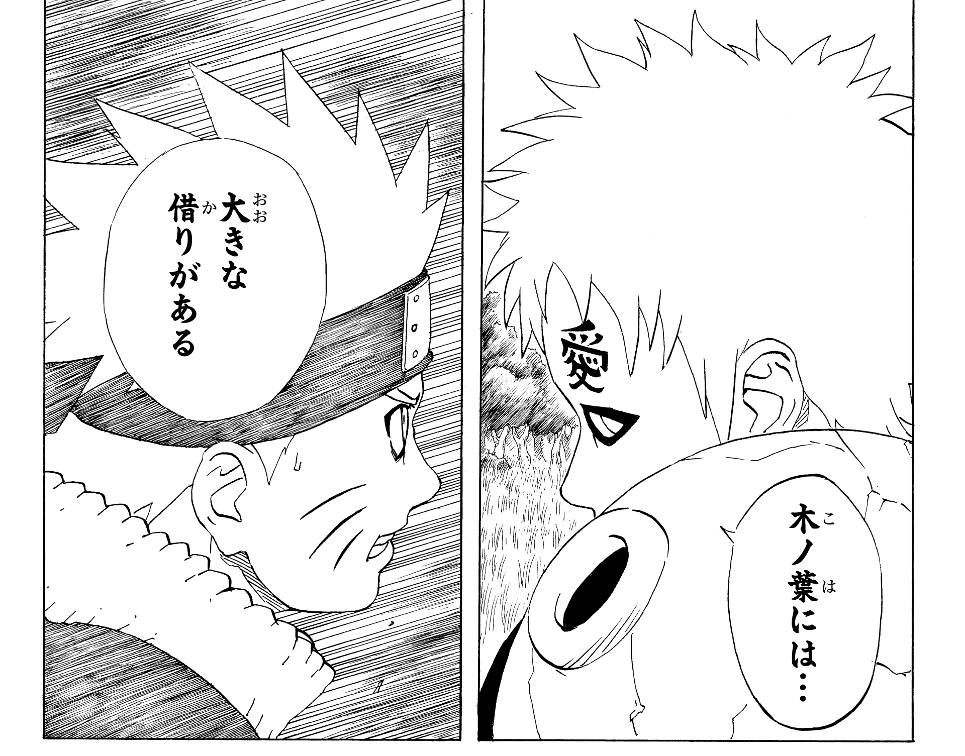 Watching Naruto continue to struggle to protect his friends even while completely exhausted, Gaara cannot hide his confusion.