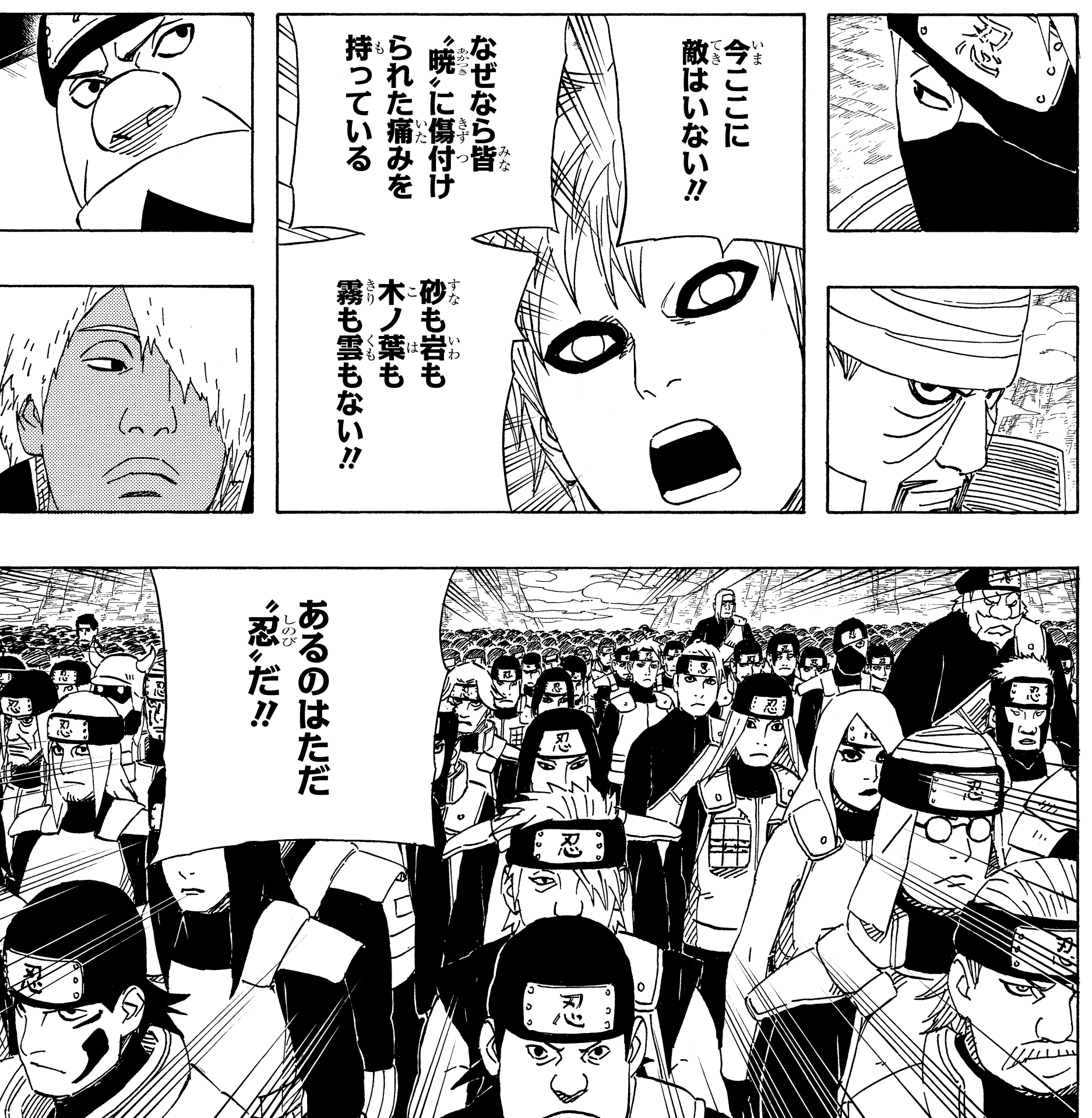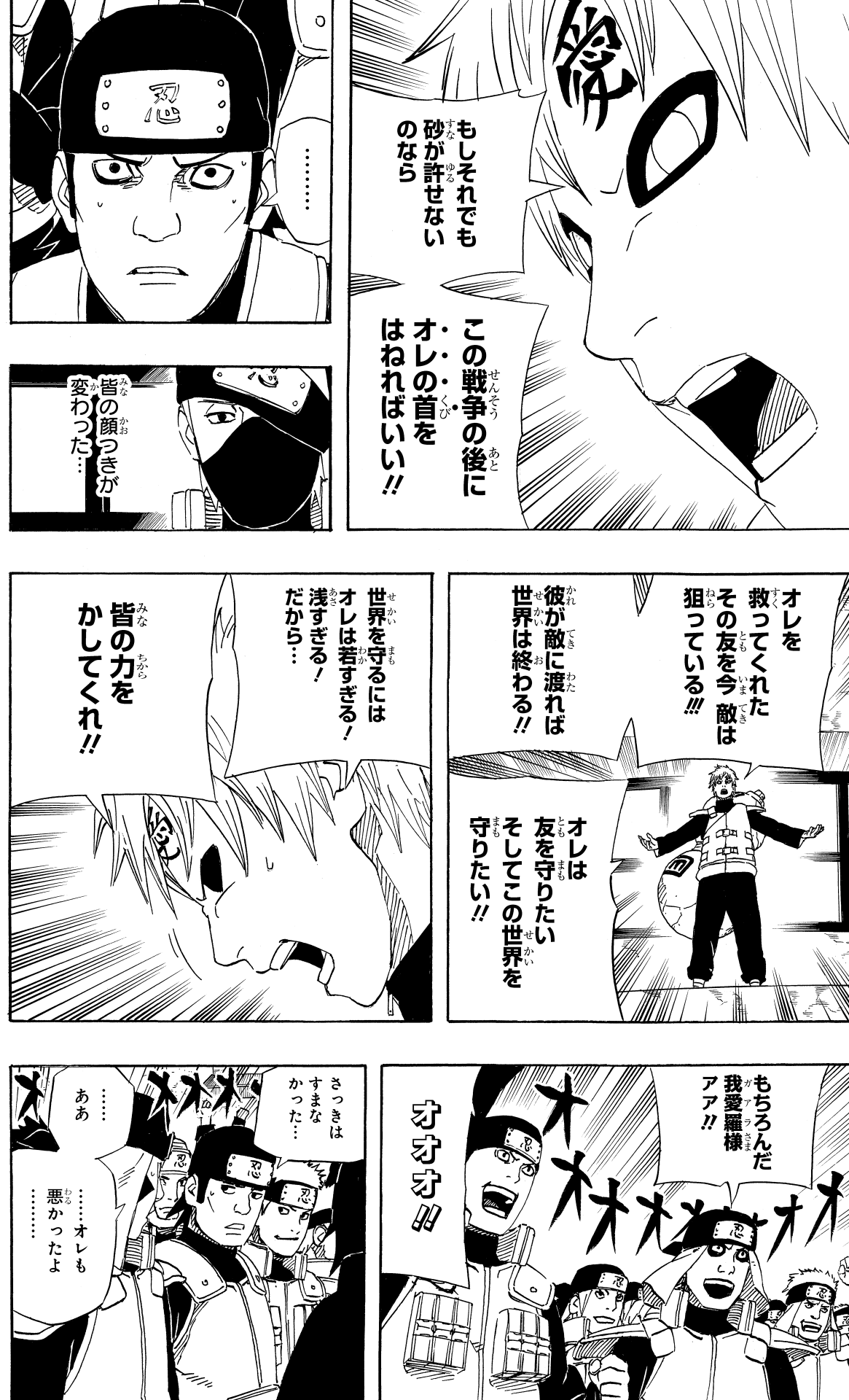 Gaara's passionate speech resonates with the allied shinobi, fostering unity between ninja who were once bitter foes.