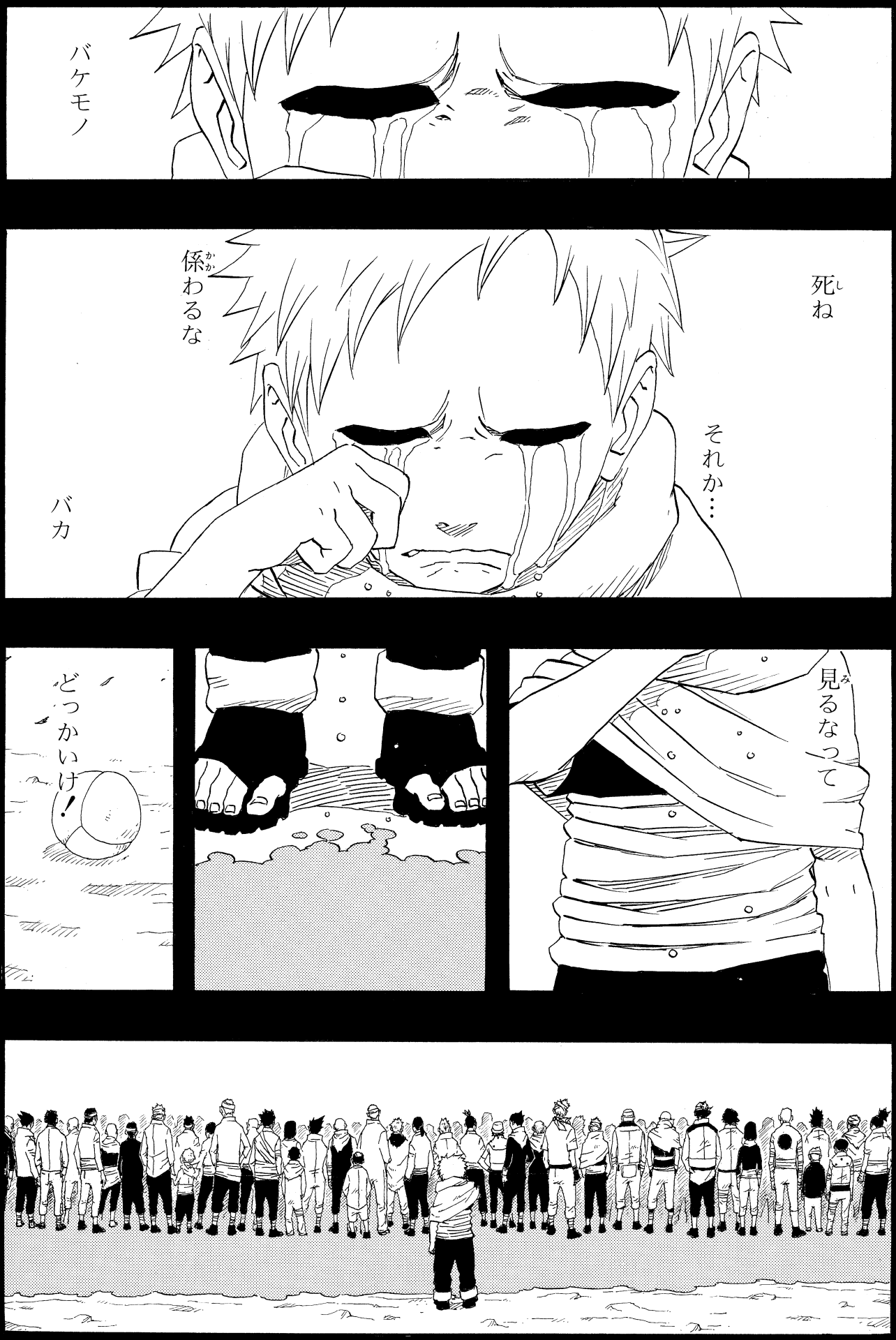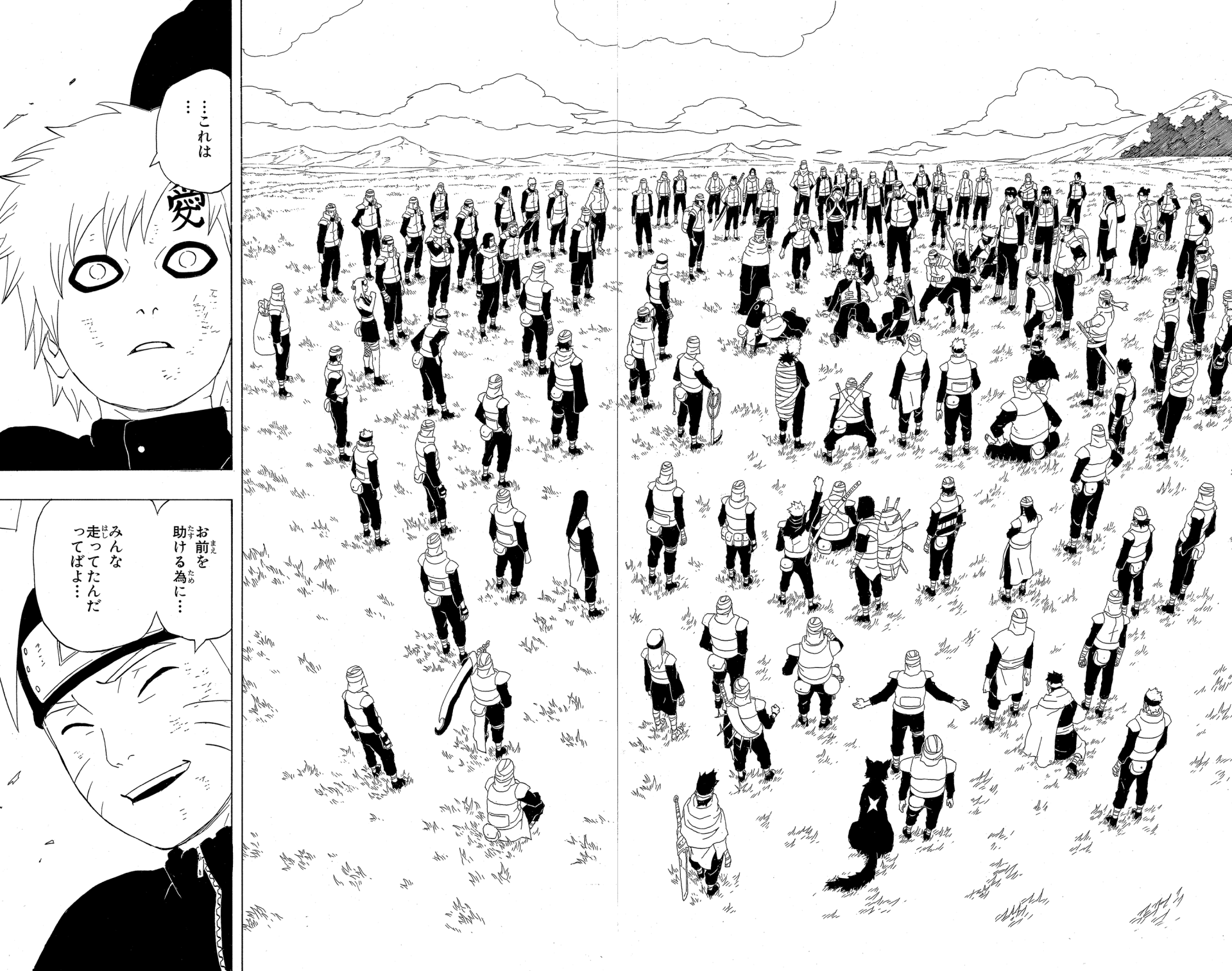 Breath returning to his lungs, Gaara reawakens to find himself surrounded by comrades, and this proof of his connections to others affirms the value of his existence.