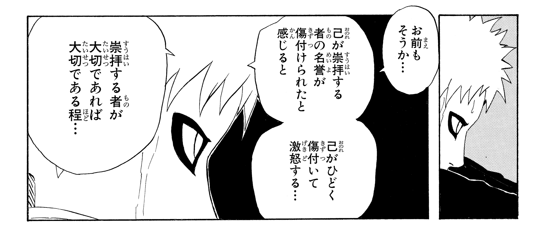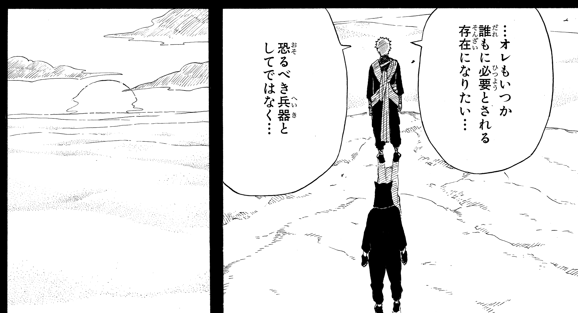 He addresses the lingering distrust between the ninja of various villages, remembering his own past and his bond with Naruto.
