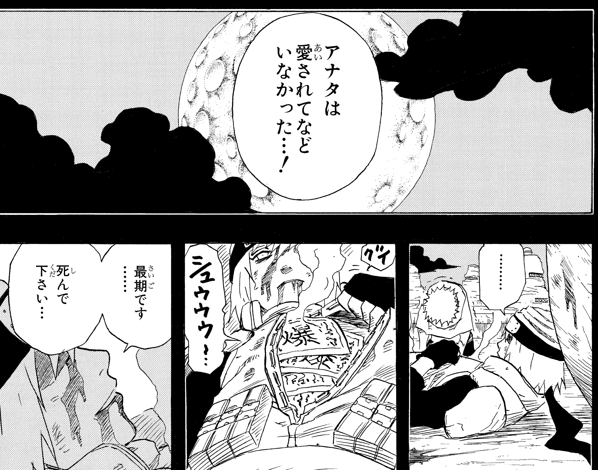 Gaara is further shaken by this, but Yashamaru continues on, revealing even more cruel truths before blowing himself up in a last-ditch attempt to kill his target.