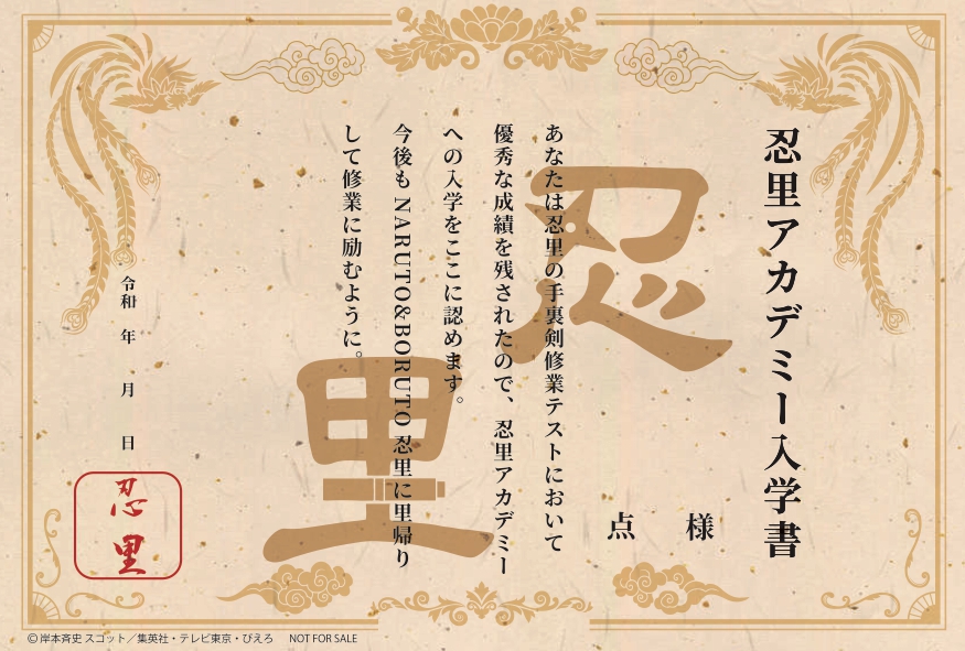 Anyone who clears the mission will receive a certificate of admission for the "Shinobi-Zato Academy" with their name on it!