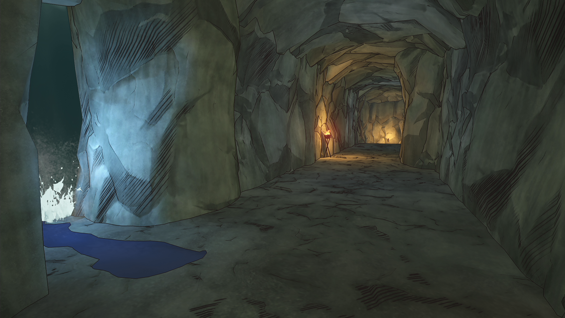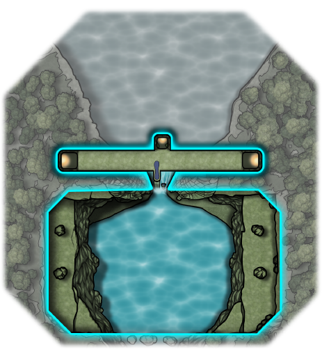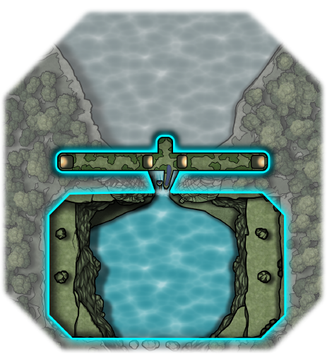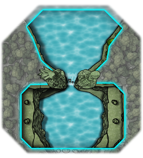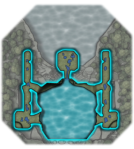 The rocks protruding out into the falls and the area behind the basin feature concealed rooms and passages suitable for clandestine battles.