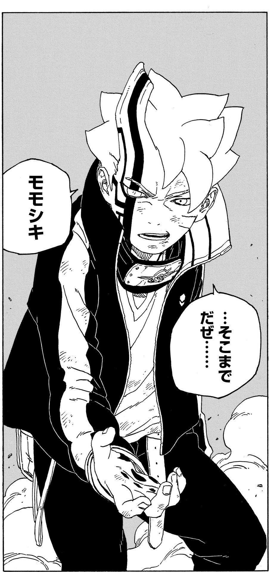 His teacher's promise to stop him by any means necessary if he loses himself to Momoshiki bolsters Boruto's resolve to fight.