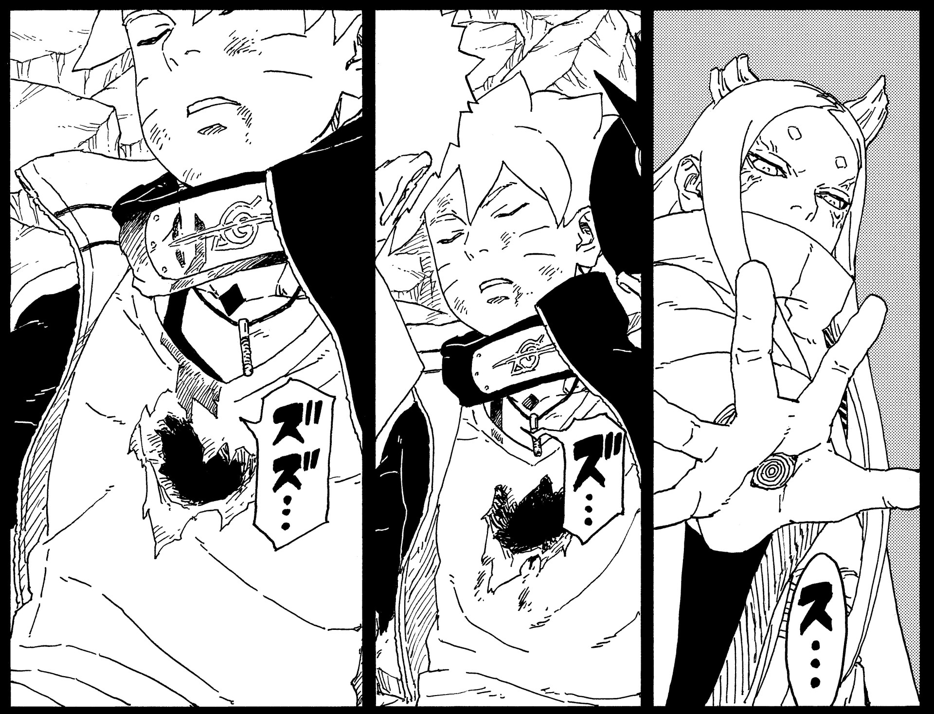 During this mission, Kawaki catches on to Momoshiki's presence within Boruto, and decides he must kill Boruto again to successfully wipe out the Otsutsuki.