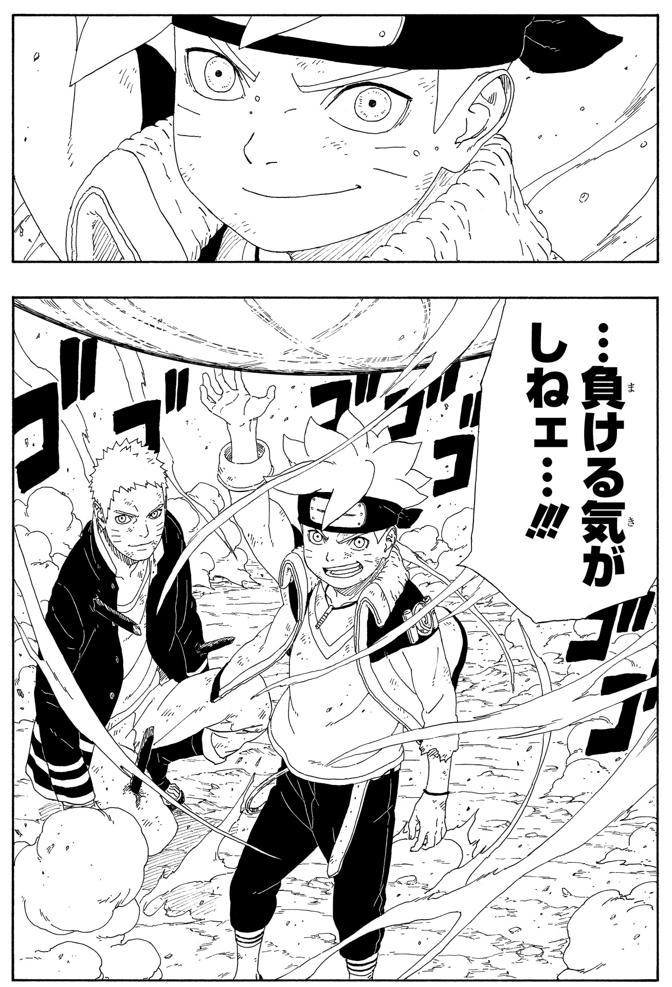 Exchanging a promise to live so Boruto can return Sasuke's headband in person, the two rush off to face Isshiki.