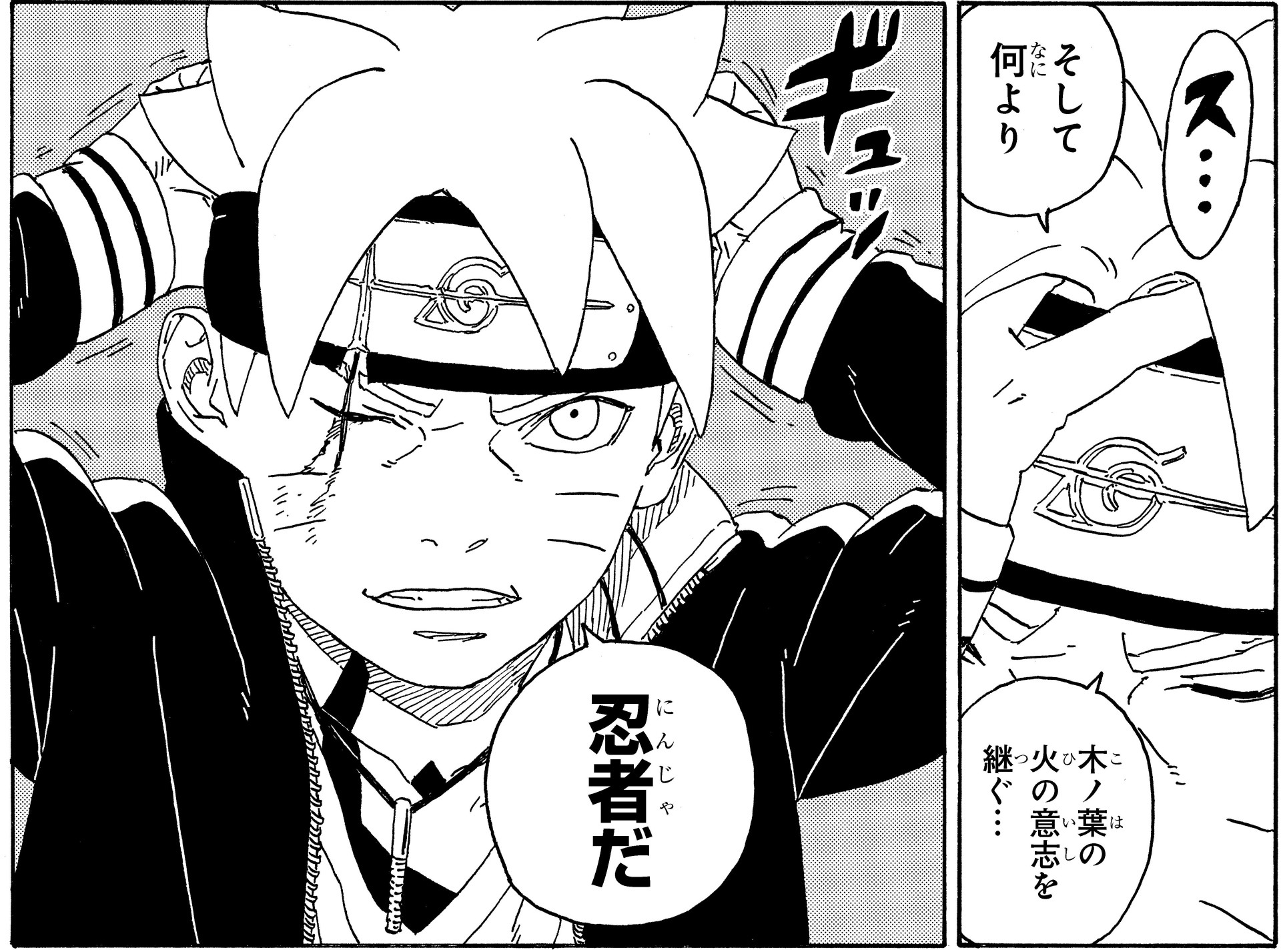 Owning up to his past mistakes and receiving a headband from Sasuke, Boruto hardens his resolve as a shinobi and decides to confront the Otsutsuki.