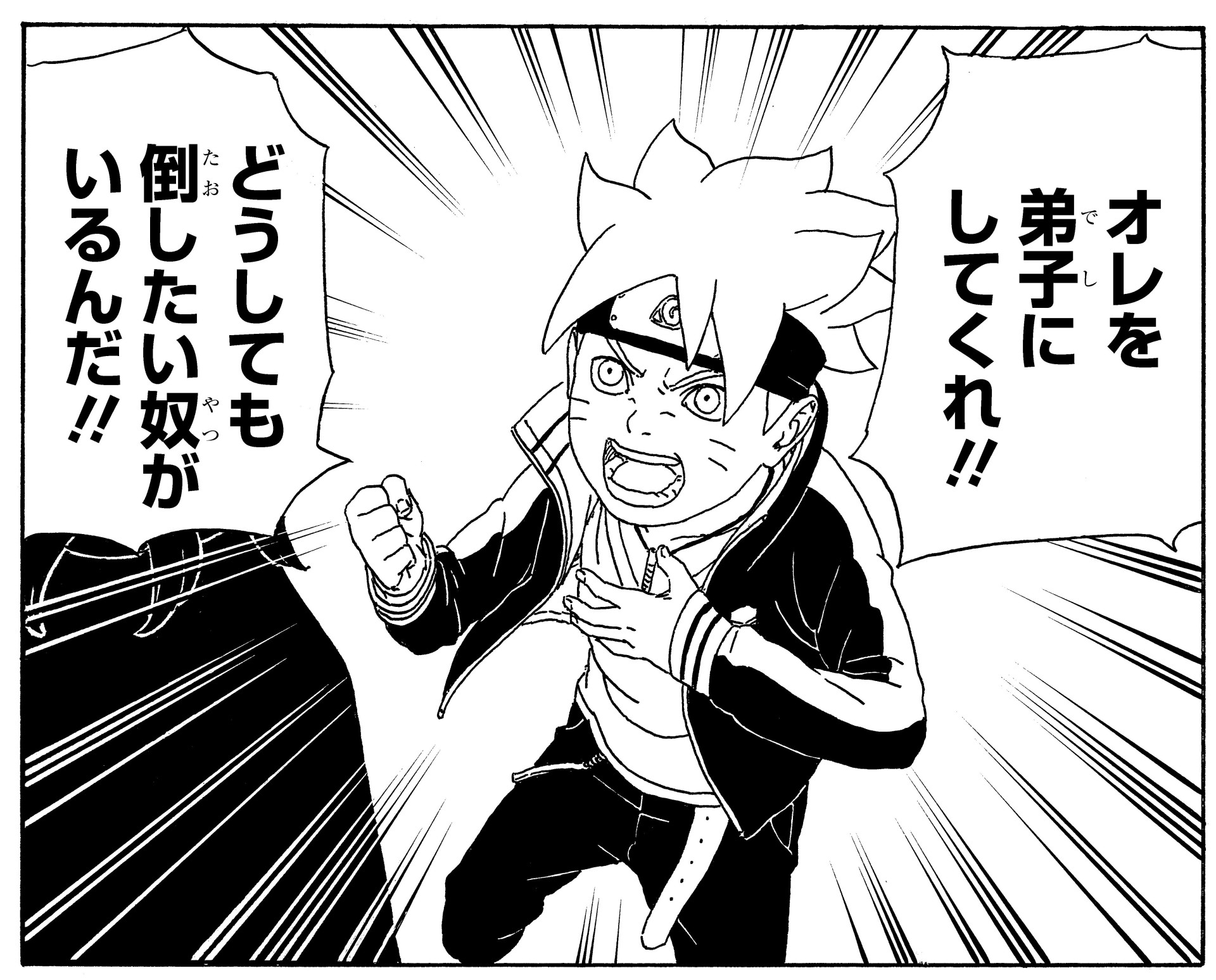 Wanting to get back at Naruto, Boruto asks Sasuke to take him on as a student.