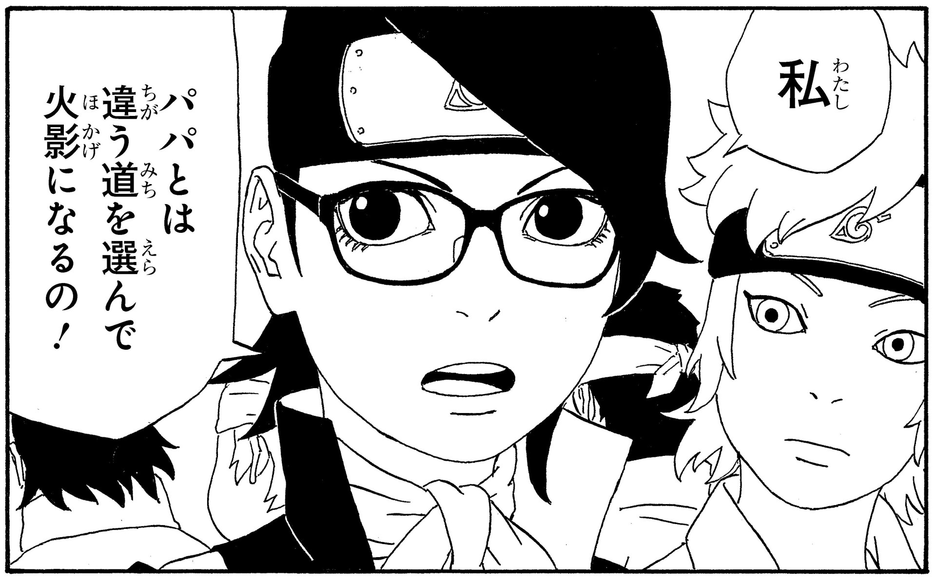 Sarada remains on Boruto's side, fighting with him against destiny.
