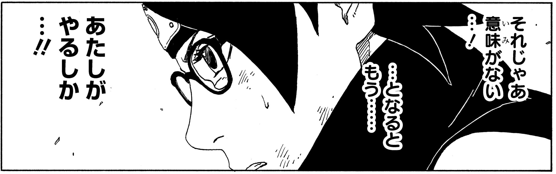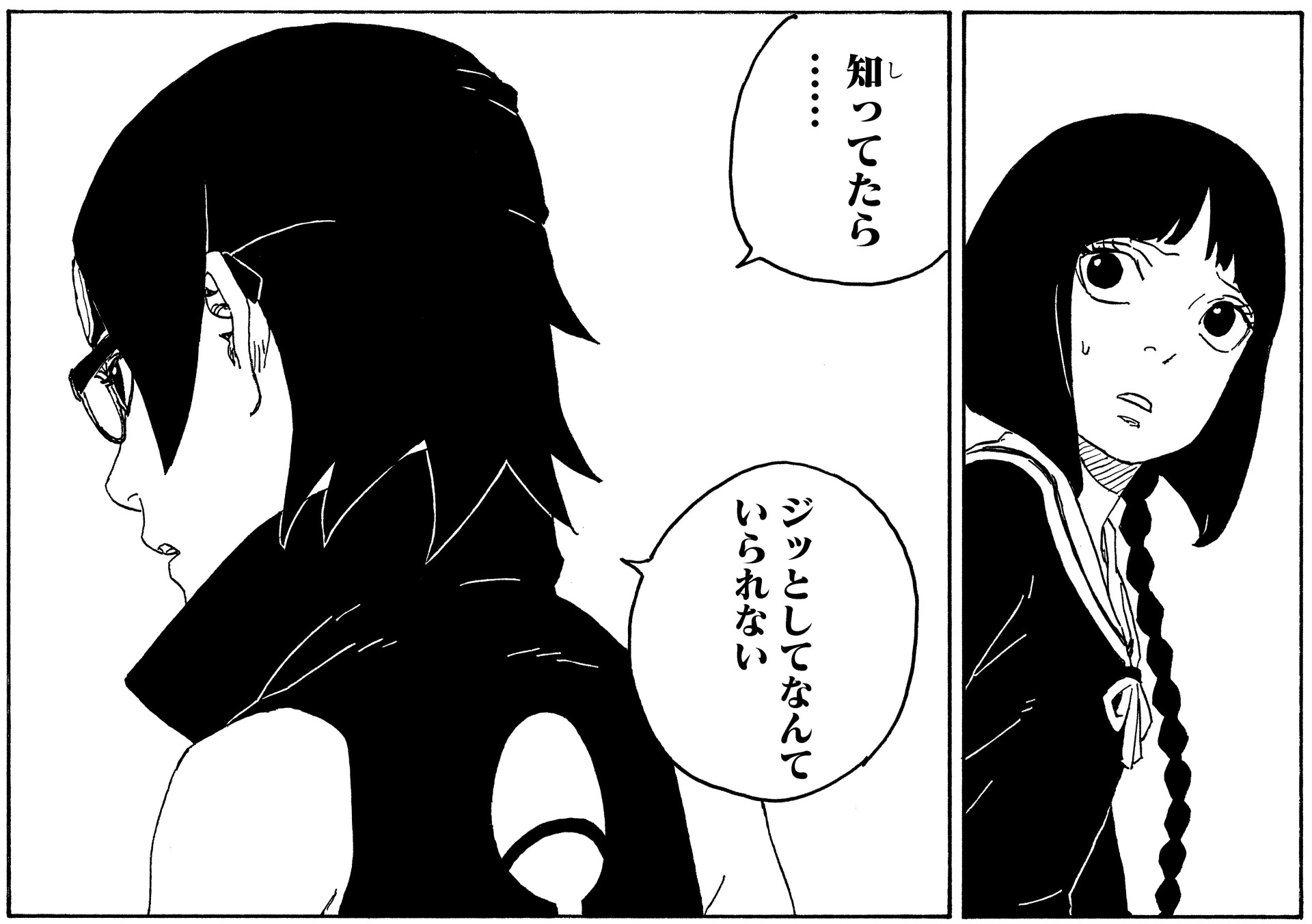 With the world turned upside down and everyone becoming Boruto's enemy, Sarada does the only thing she can think of in order to save him.